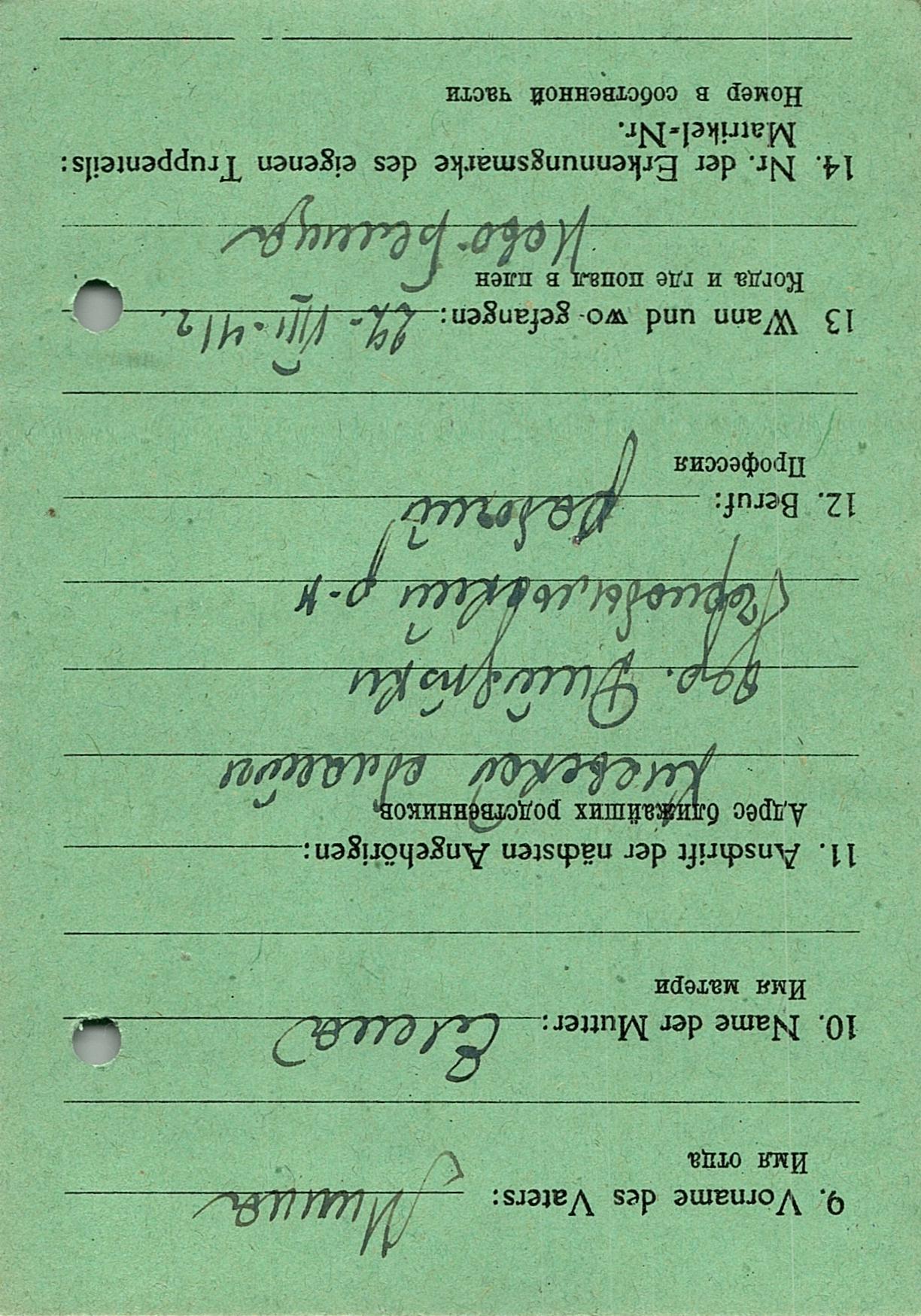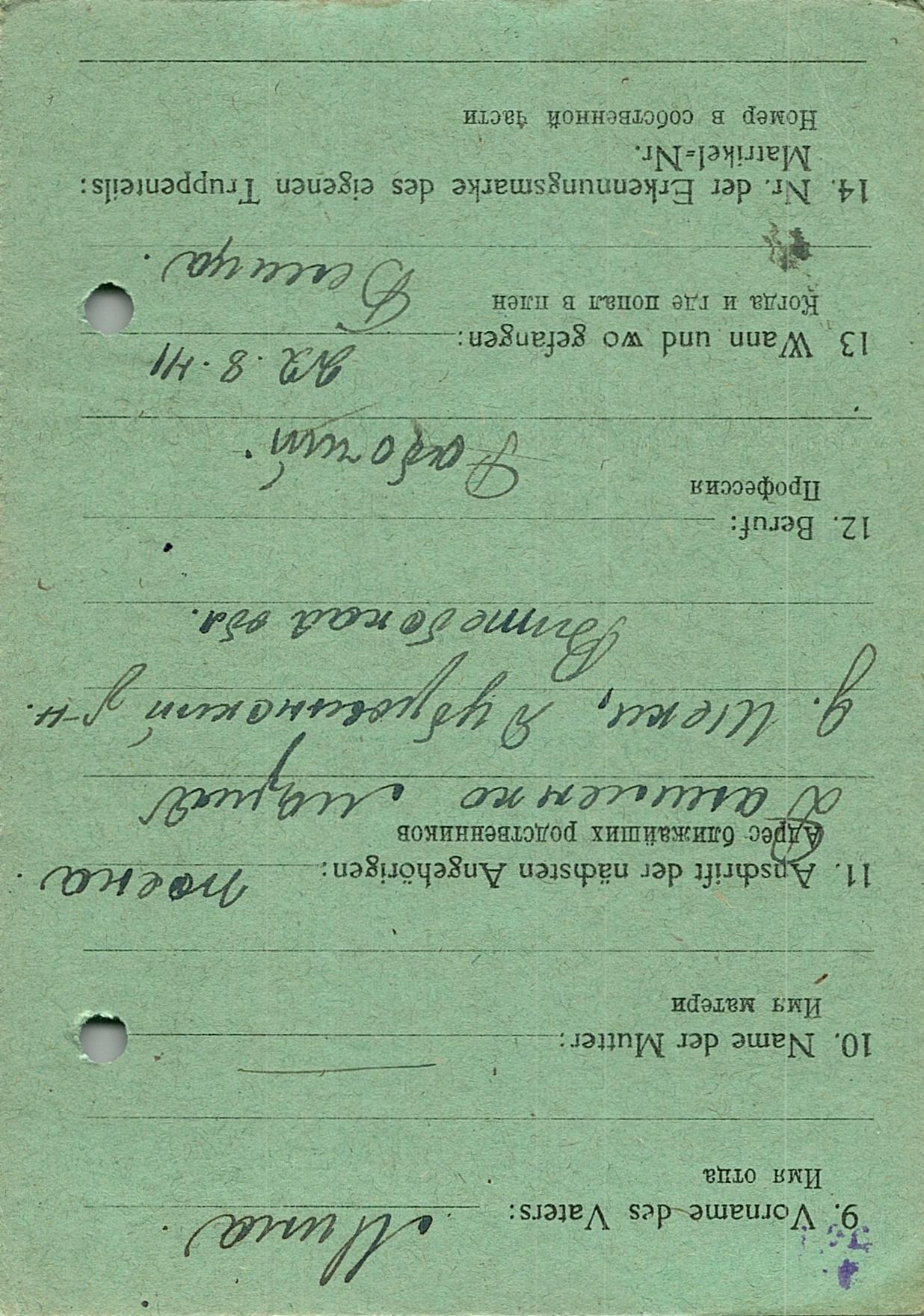 Военнопленные, трофейные карточки. Киевская обл.