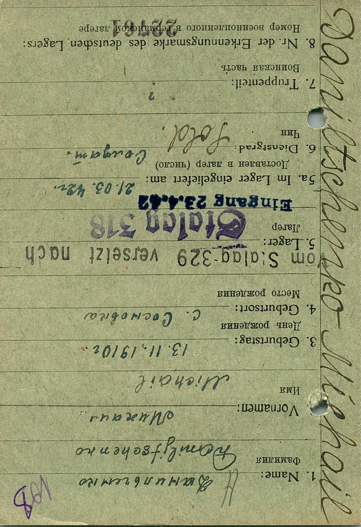 Военнопленные, трофейные карточки. Киевская обл.
