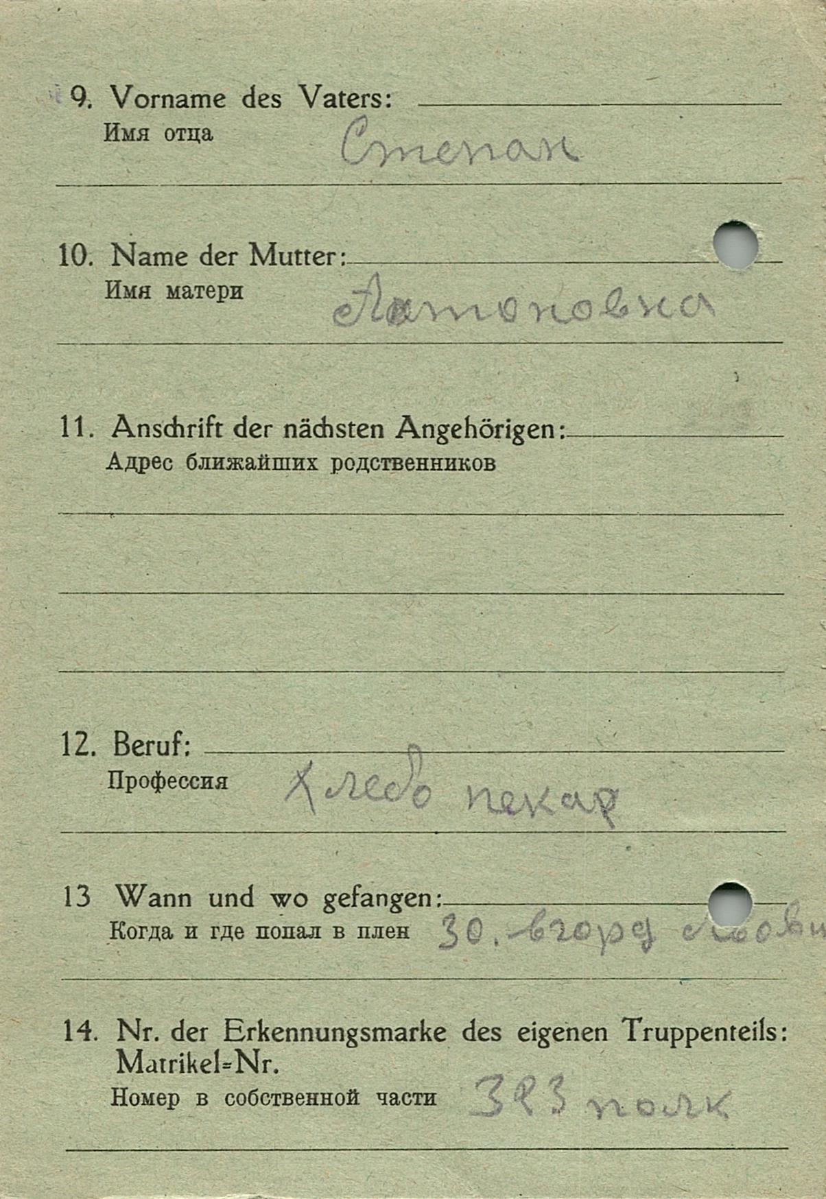 Военнопленные, трофейные карточки. Киевская обл.
