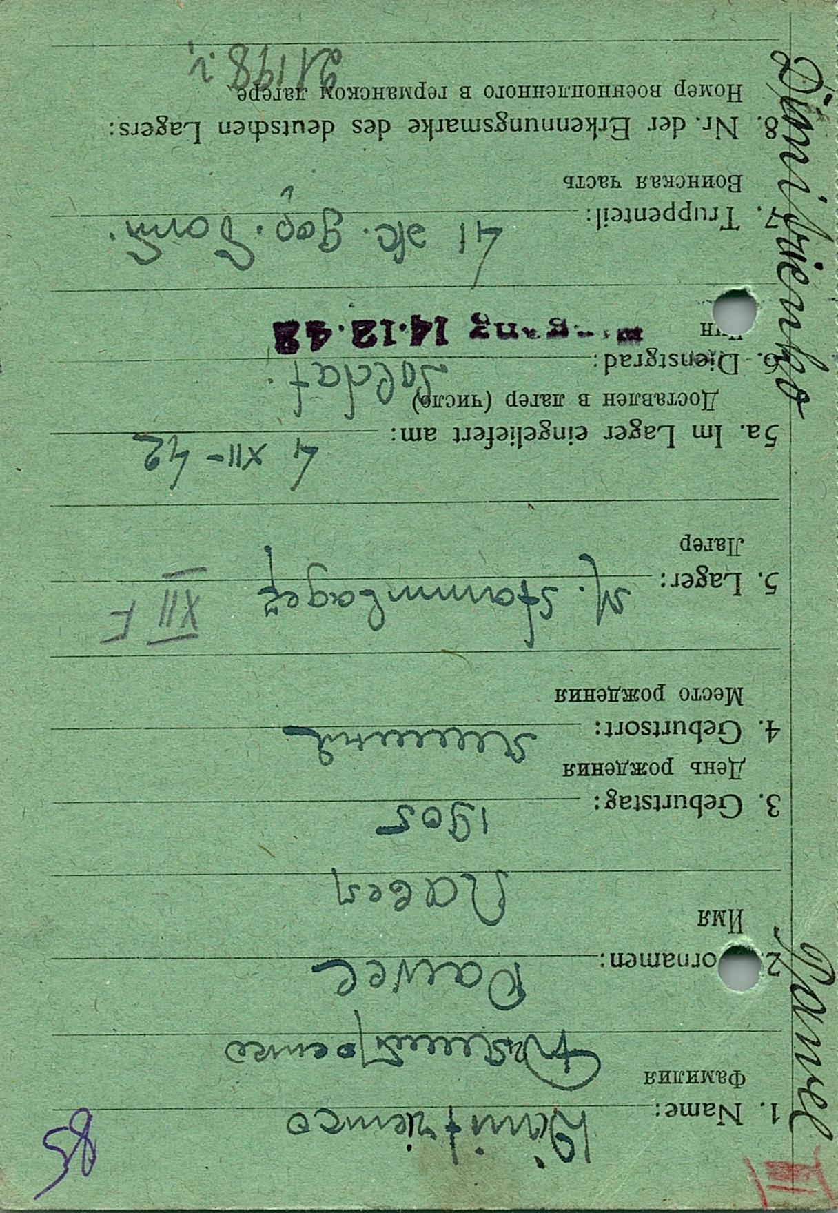 Военнопленные, трофейные карточки. Киевская обл.