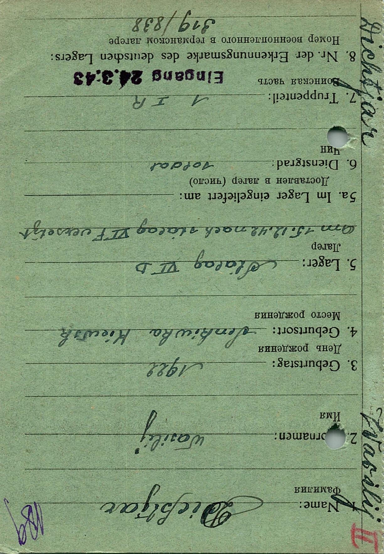 Военнопленные, трофейные карточки. Киевская обл.