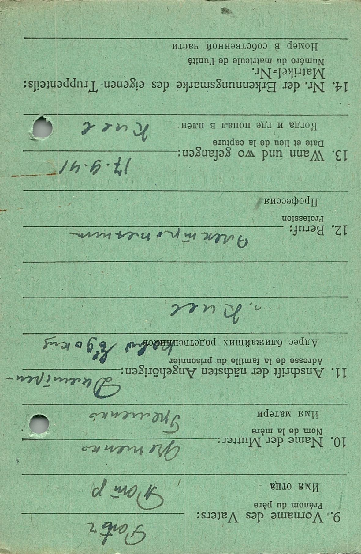 Военнопленные, трофейные карточки. Киевская обл.