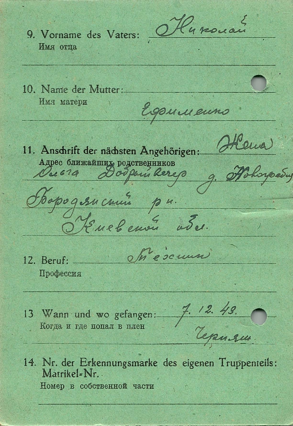 Военнопленные, трофейные карточки. Киевская обл.