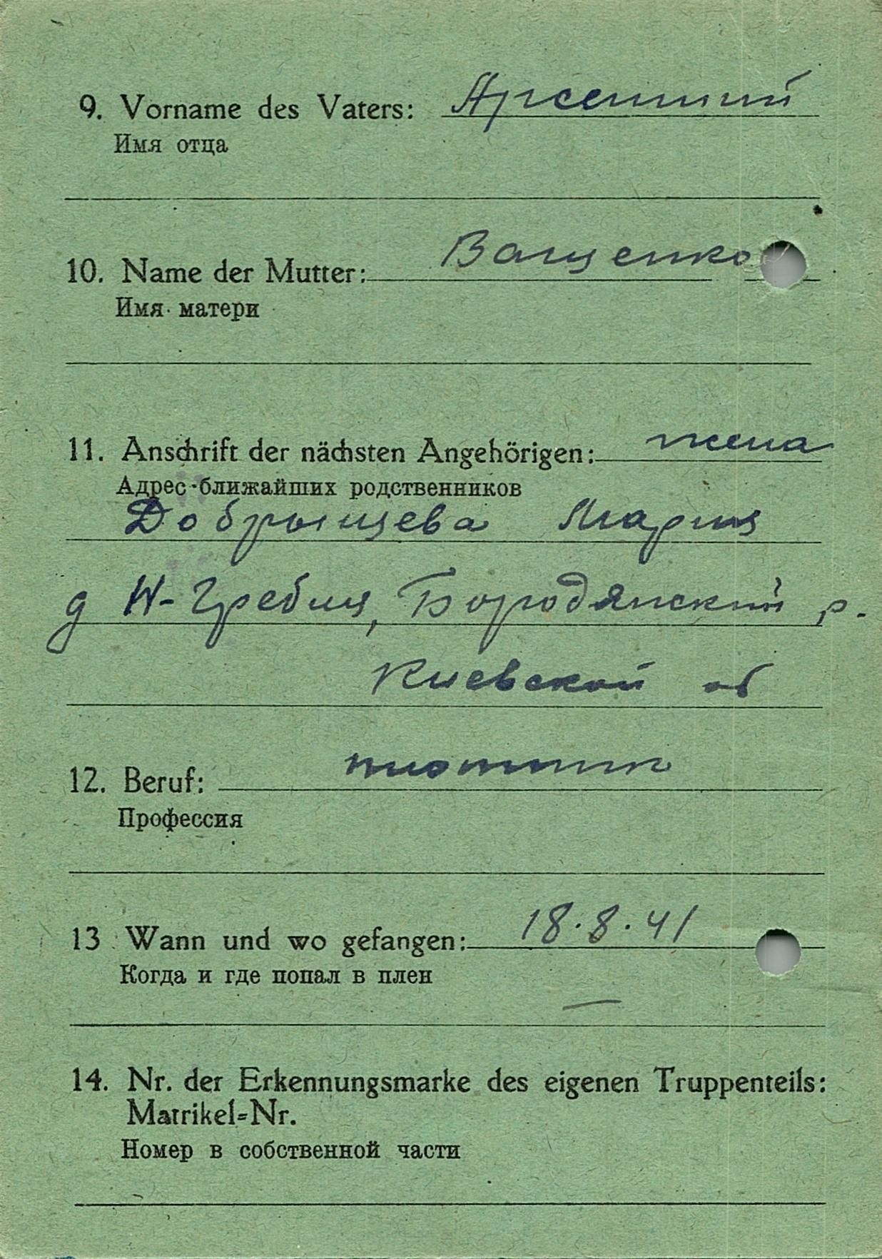 Военнопленные, трофейные карточки. Киевская обл.