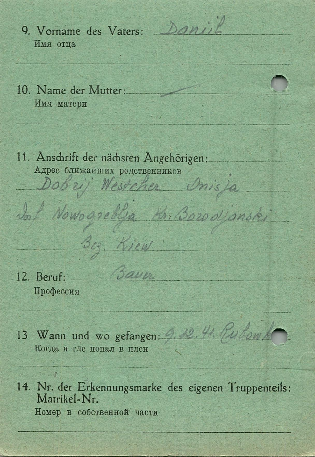 Военнопленные, трофейные карточки. Киевская обл.