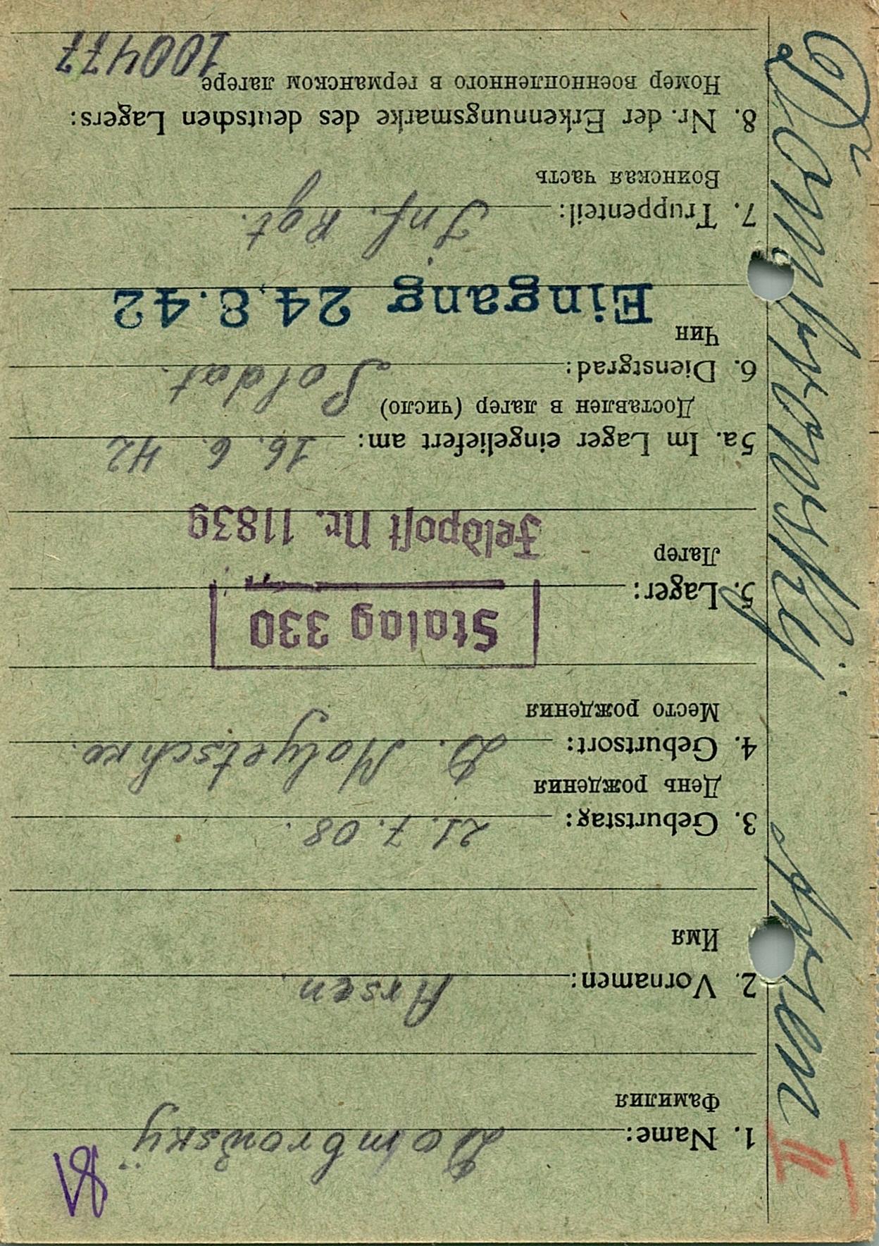 Военнопленные, трофейные карточки. Киевская обл.