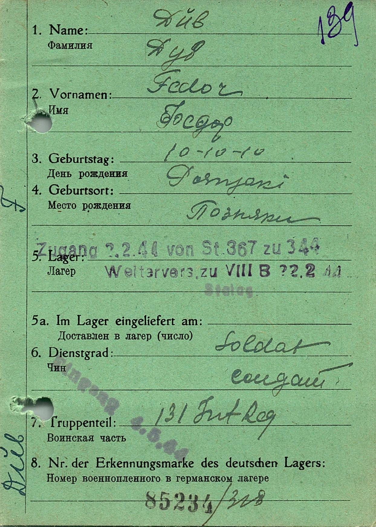 Военнопленные, трофейные карточки. Киевская обл.