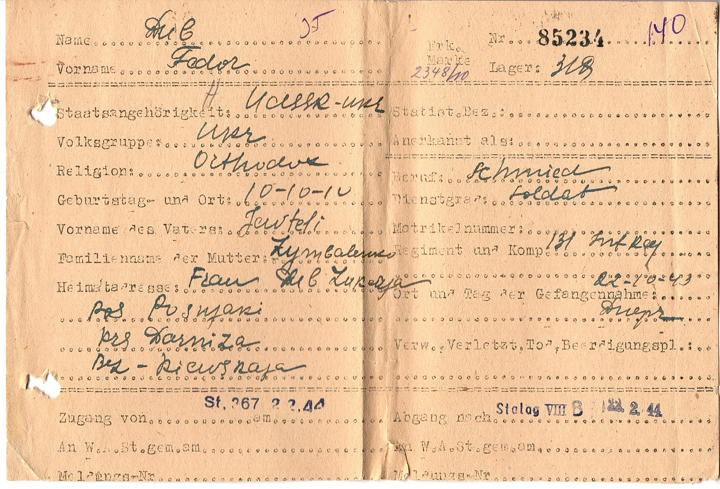 Военнопленные, трофейные карточки. Киевская обл.