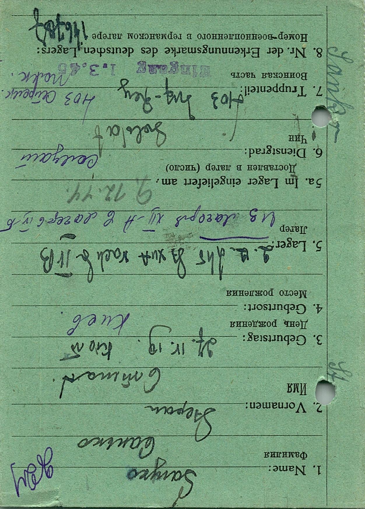 Военнопленные, трофейные карточки. Киевская обл.