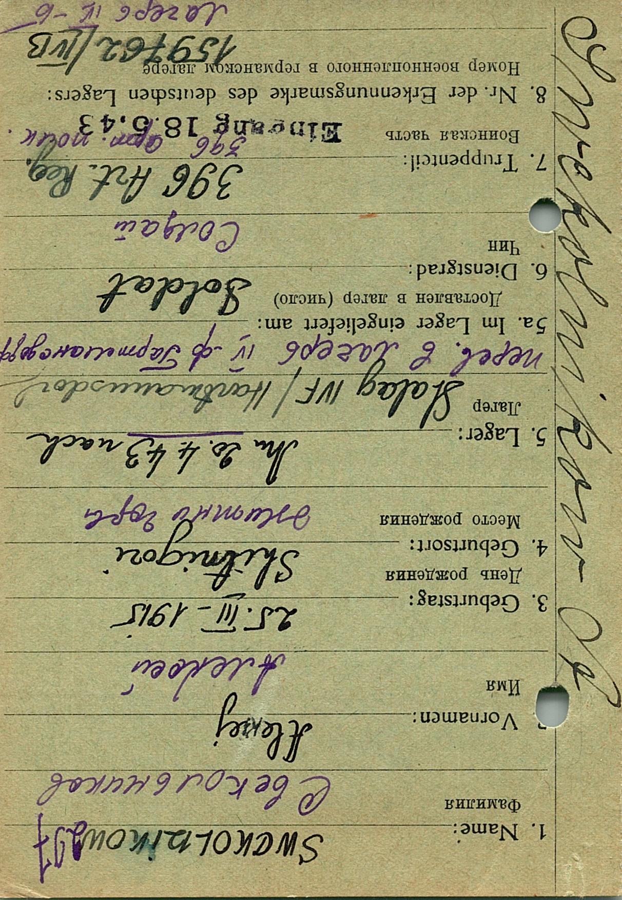 Военнопленные, трофейные карточки. Киевская обл.