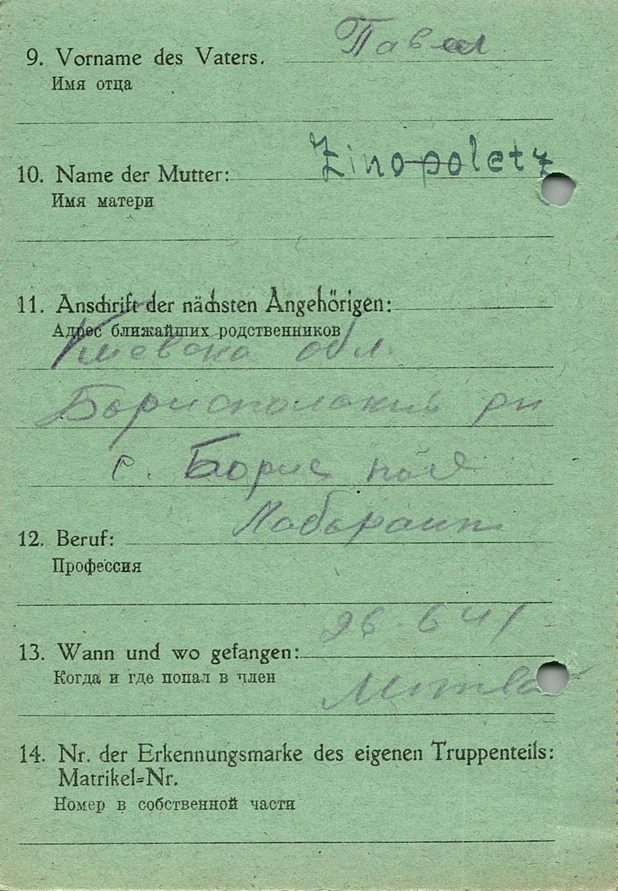 Военнопленные, трофейные карточки. Киевская обл.