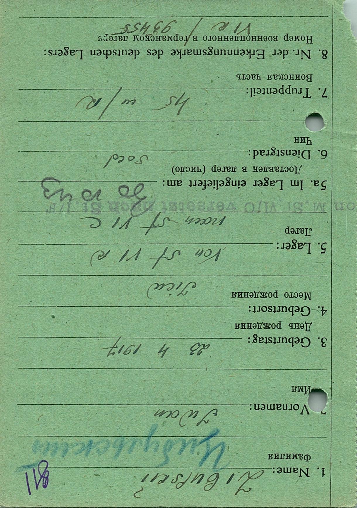 Военнопленные, трофейные карточки. Киевская обл.
