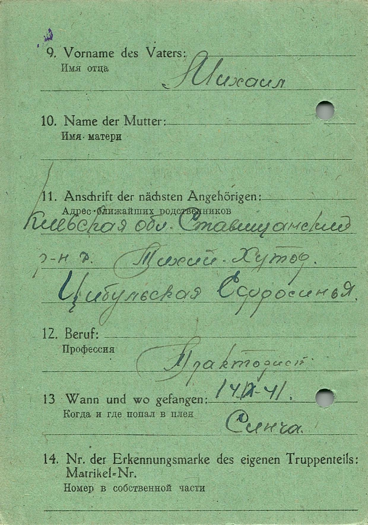 Военнопленные, трофейные карточки. Киевская обл.