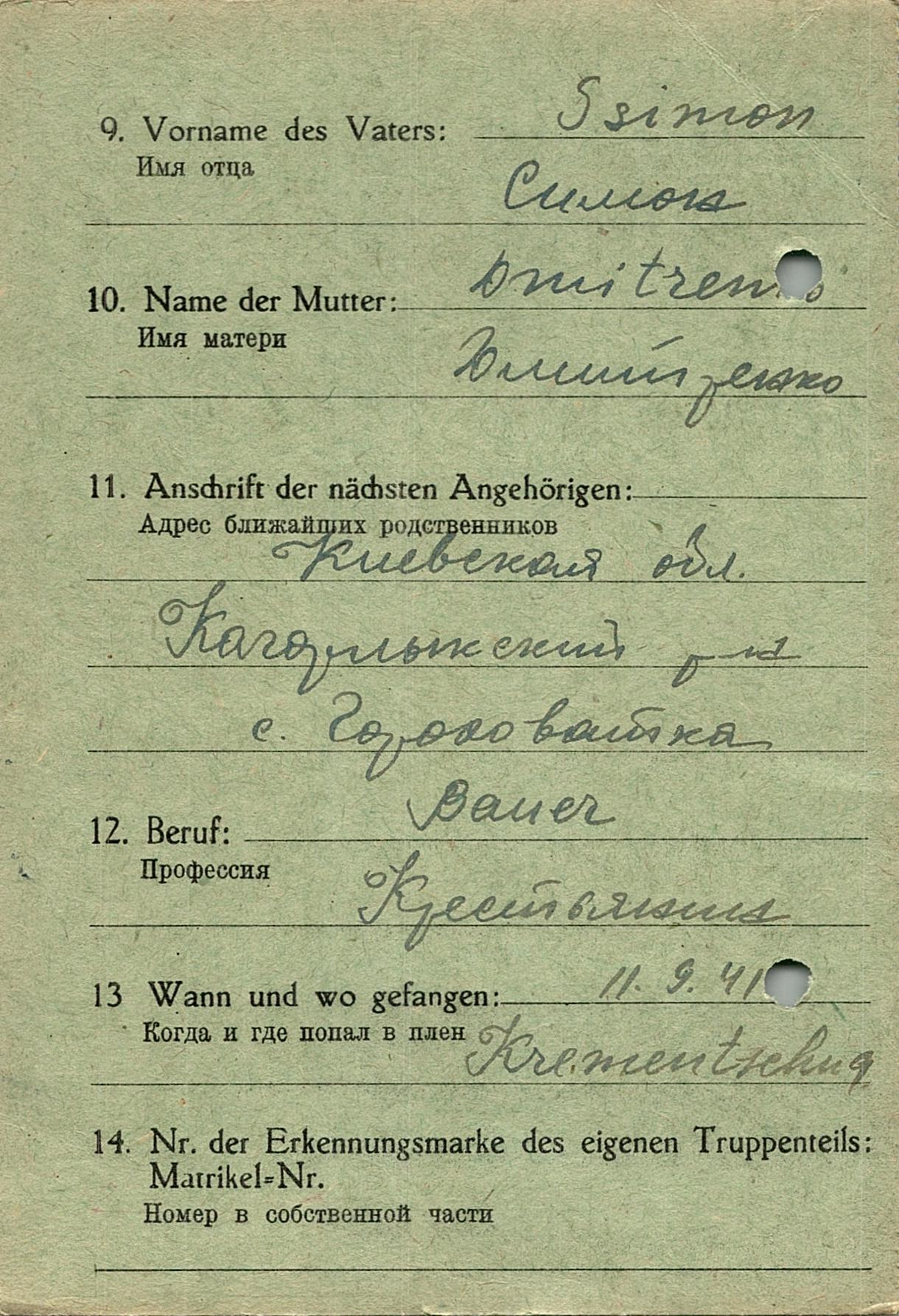 Военнопленные, трофейные карточки. Киевская обл.