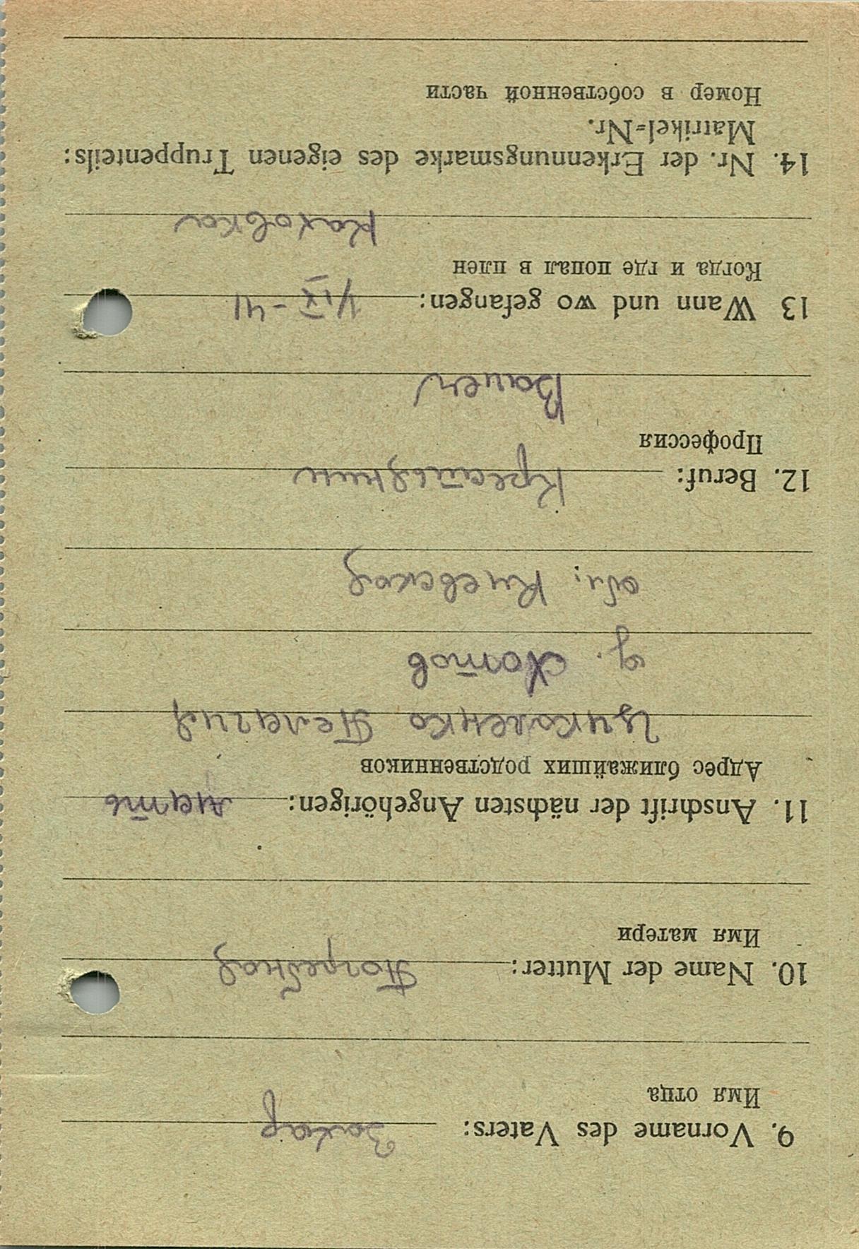 Военнопленные, трофейные карточки. Киевская обл.