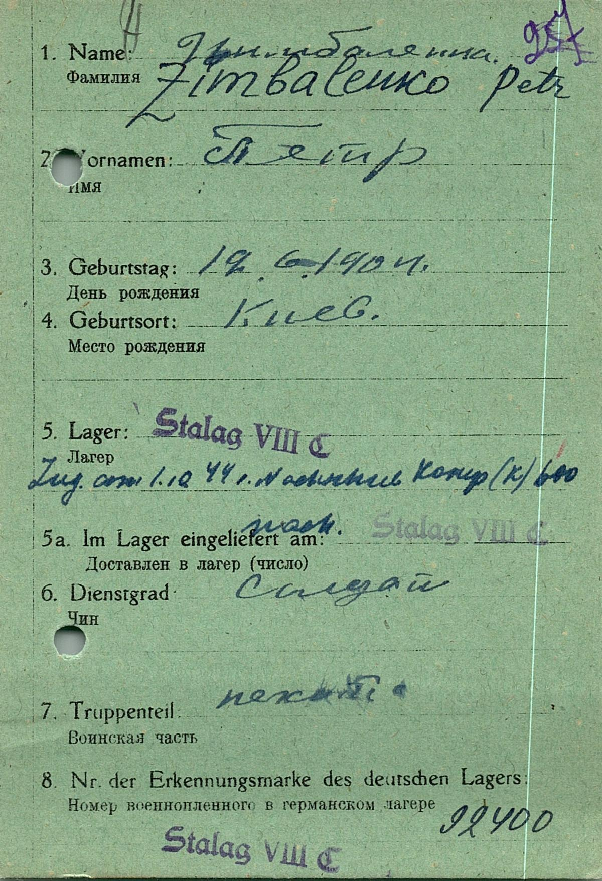 Военнопленные, трофейные карточки. Киевская обл.
