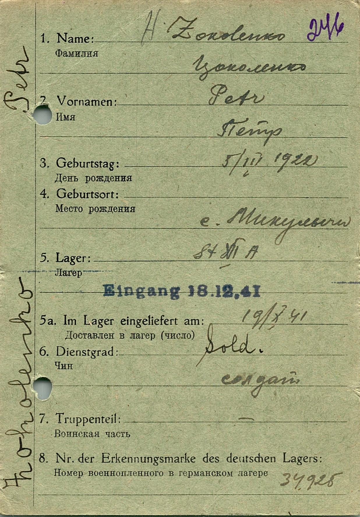 Военнопленные, трофейные карточки. Киевская обл.