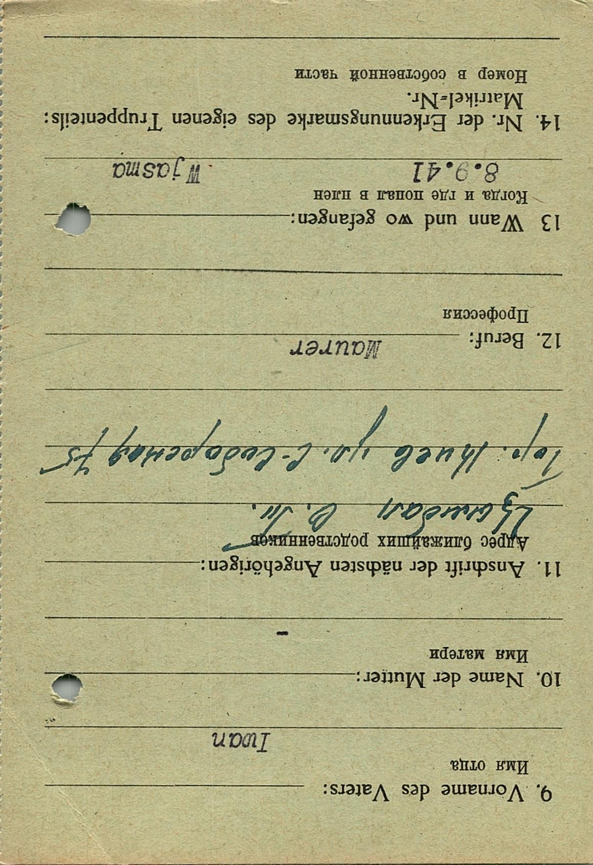 Военнопленные, трофейные карточки. Киевская обл.