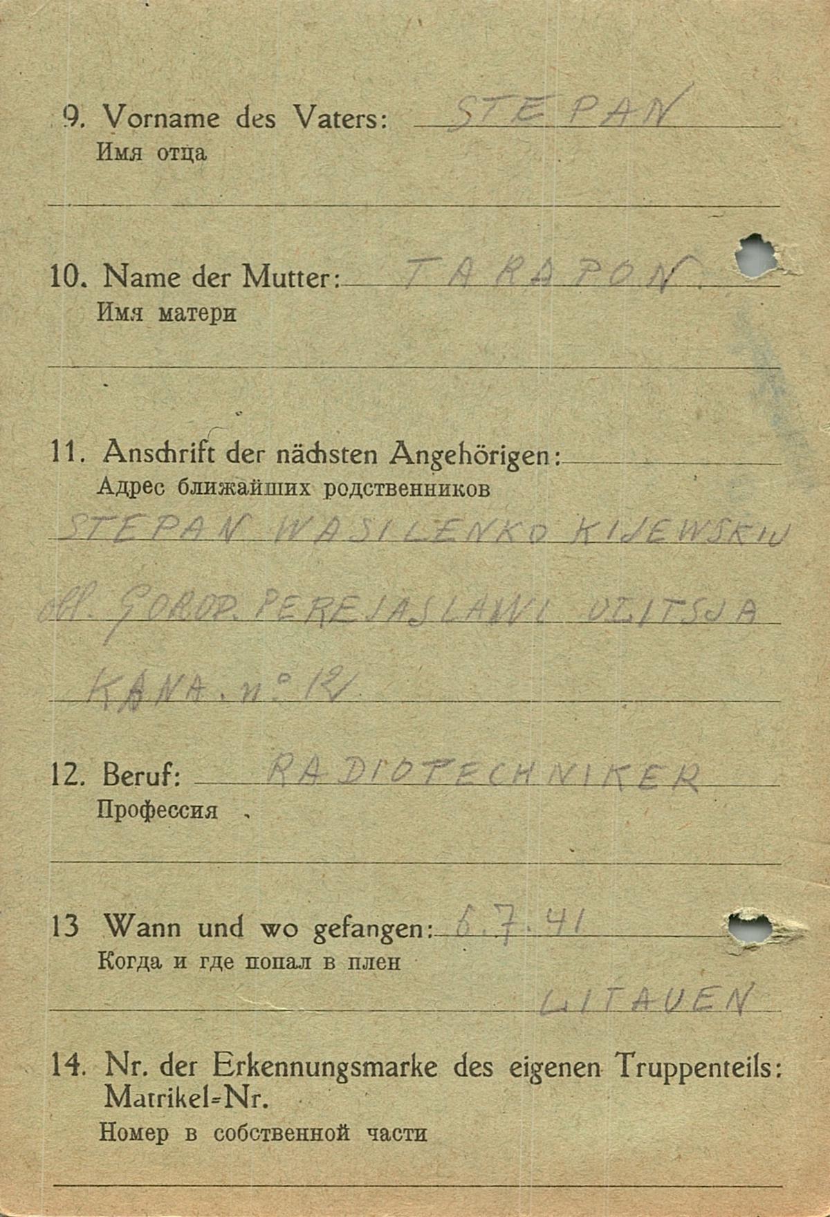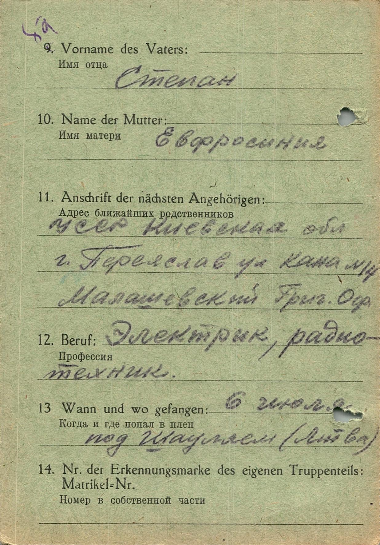 Военнопленные, трофейные карточки. Киевская обл.