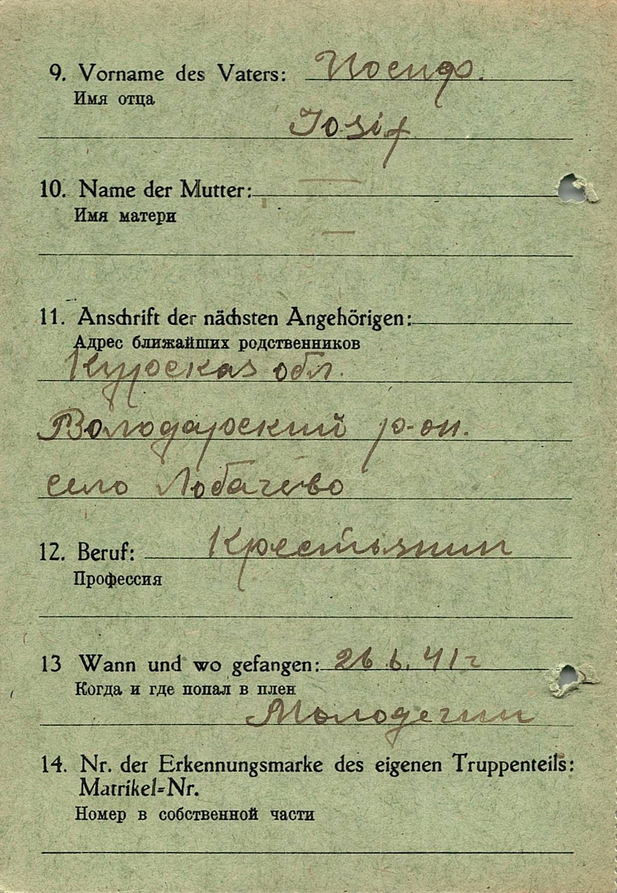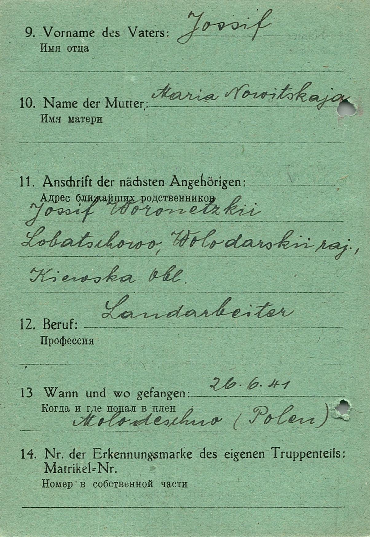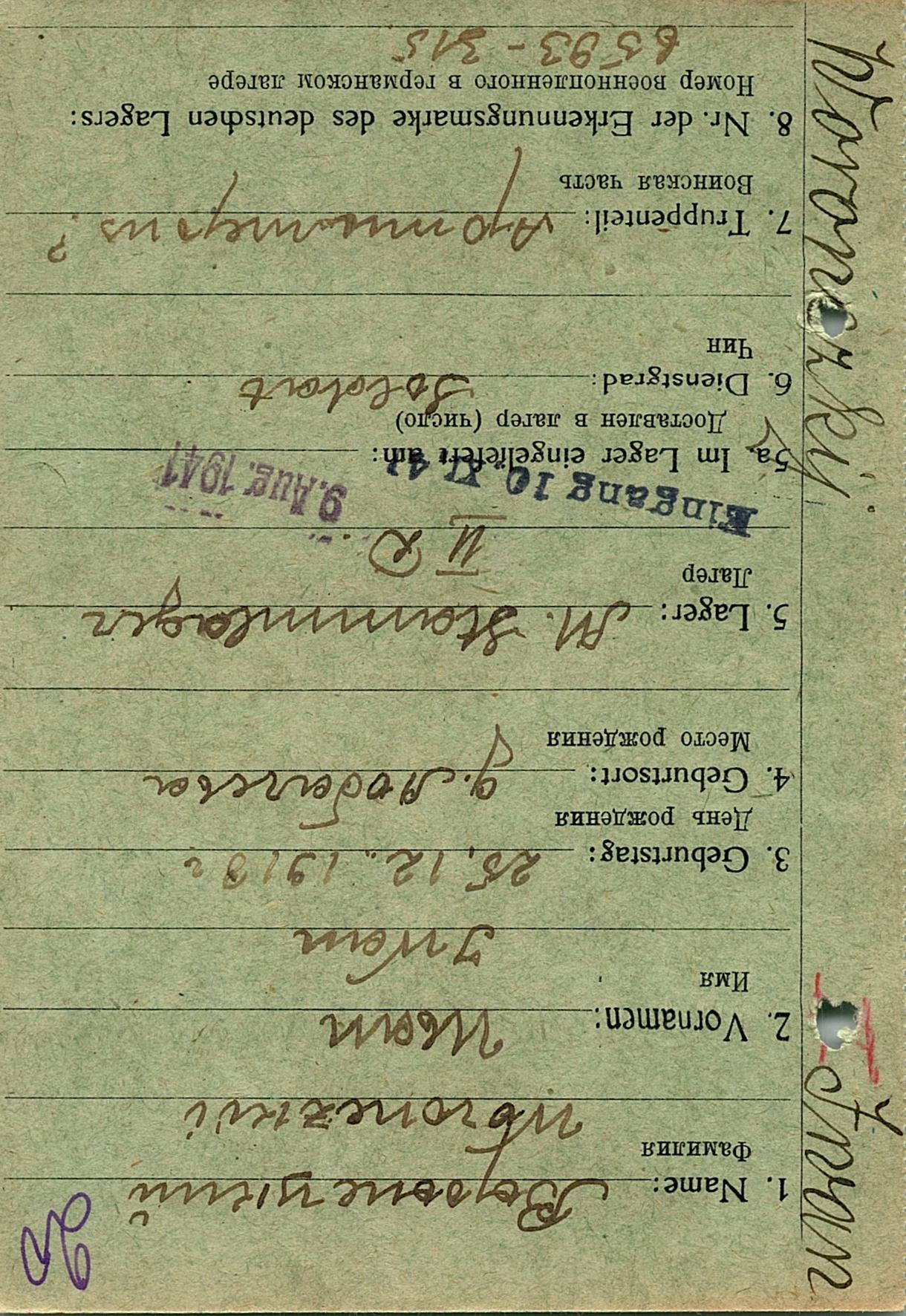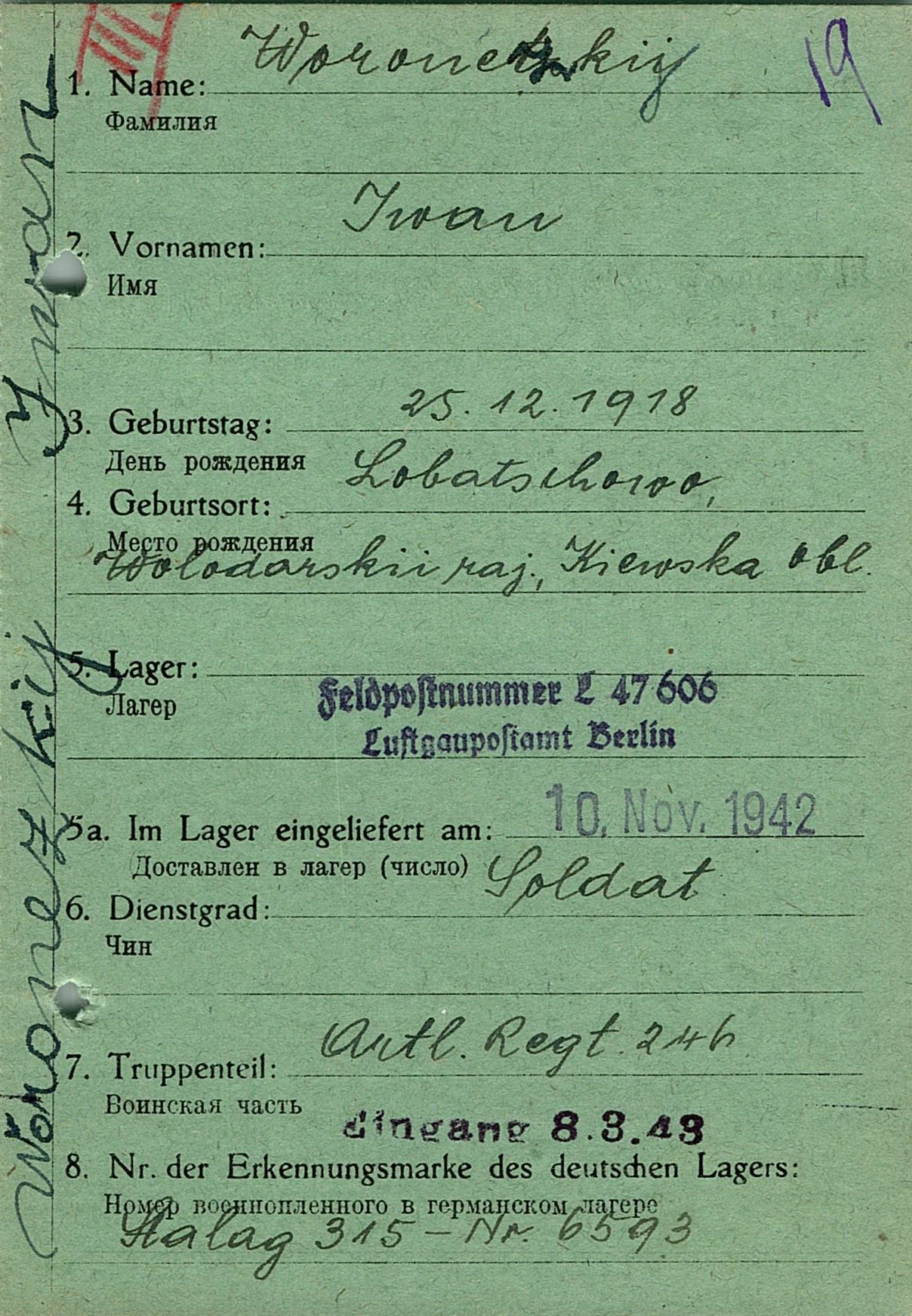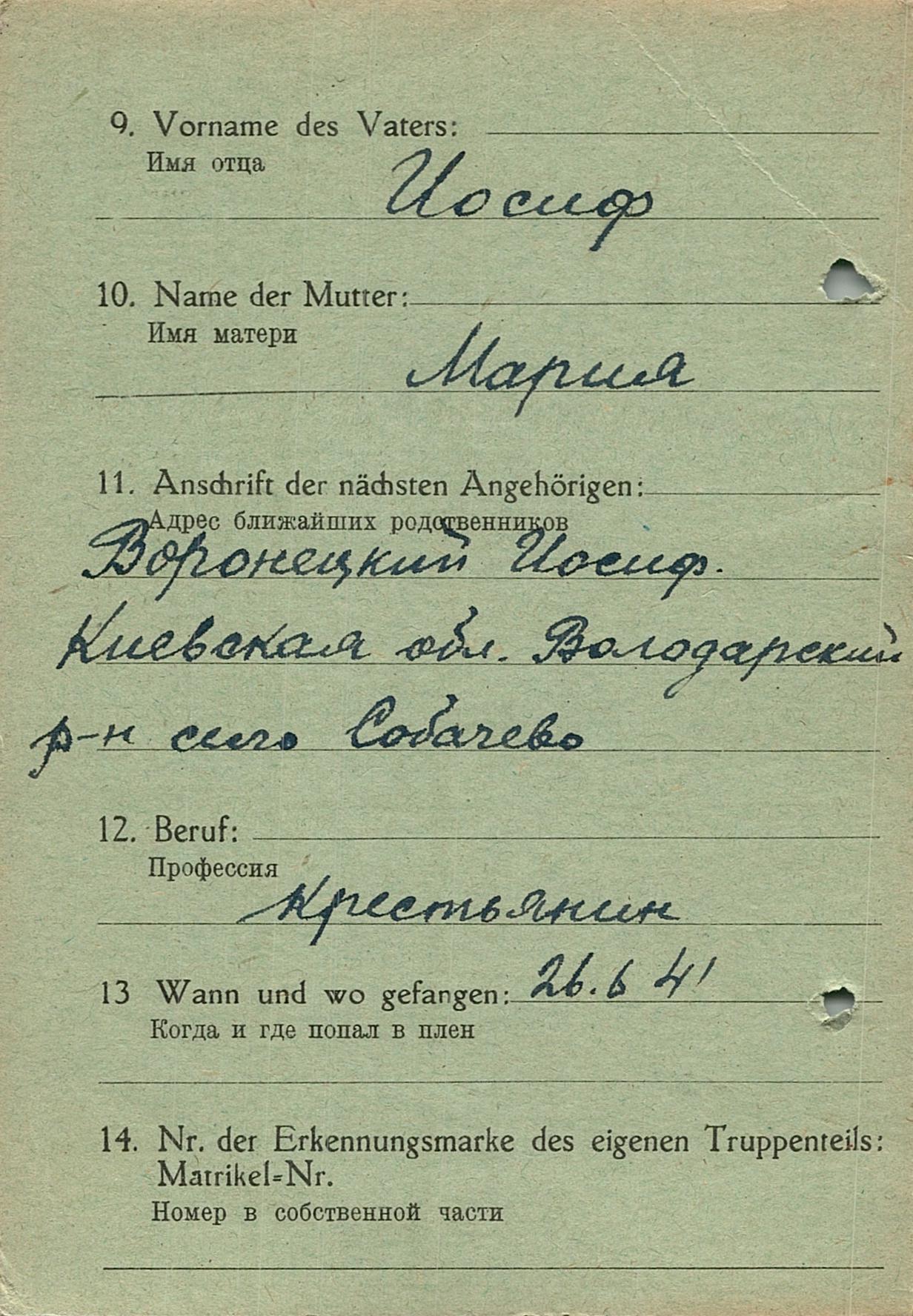 Военнопленные, трофейные карточки. Киевская обл.