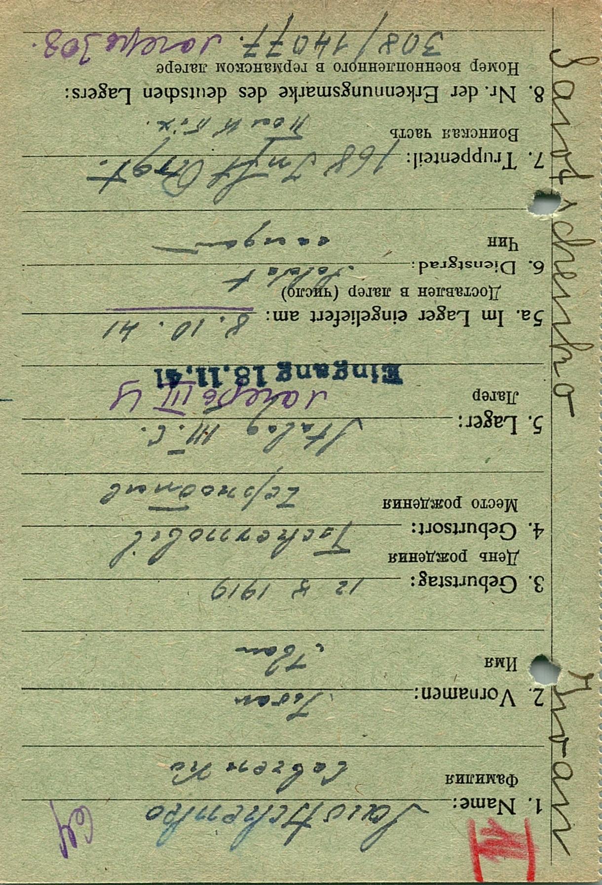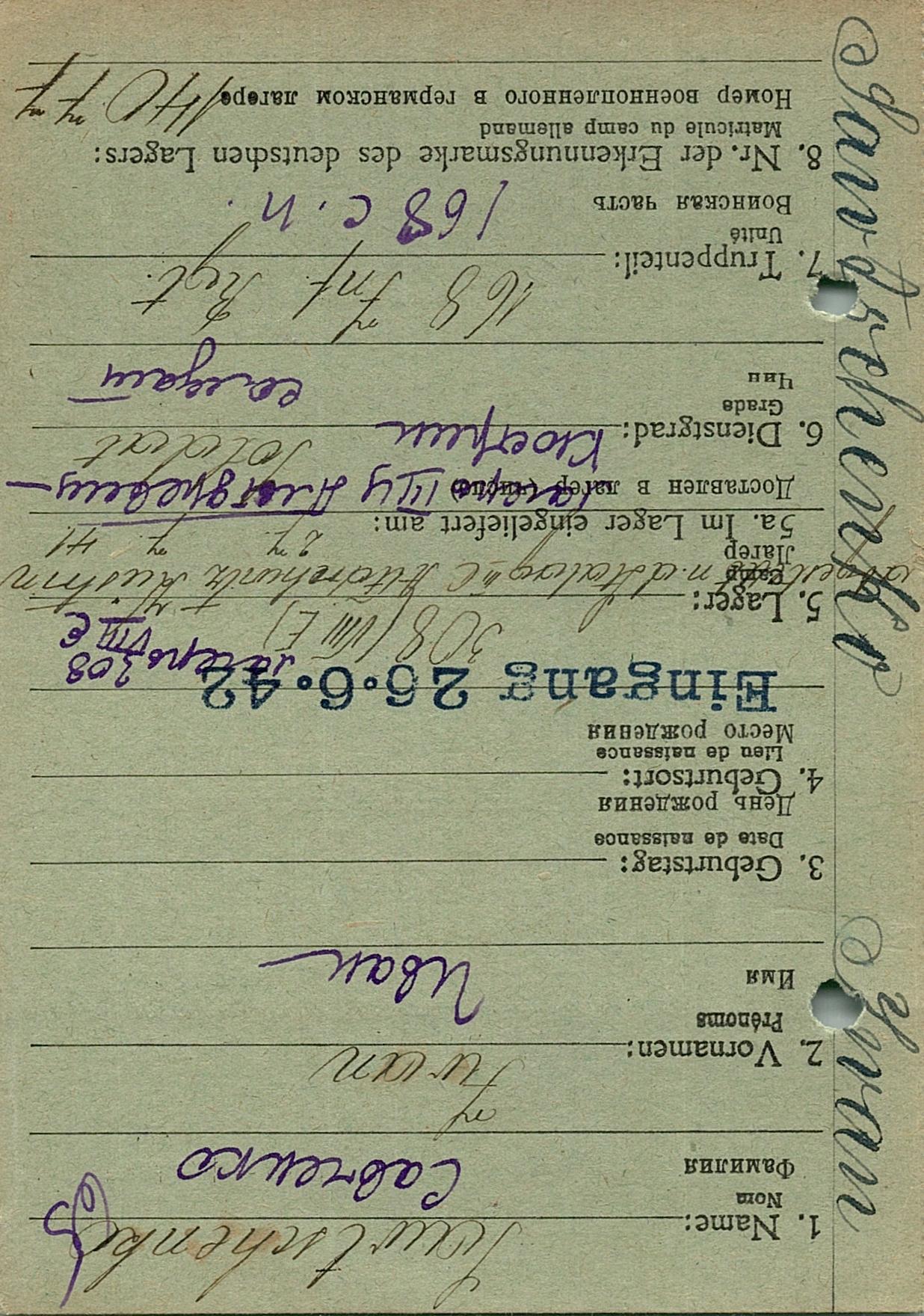 Военнопленные, трофейные карточки. Киевская обл.