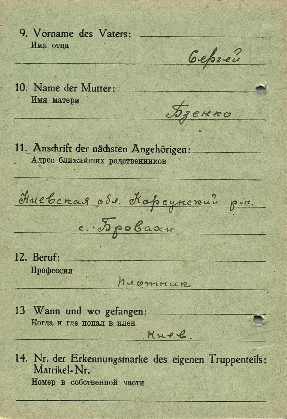 Военнопленные, трофейные карточки. Киевская обл.