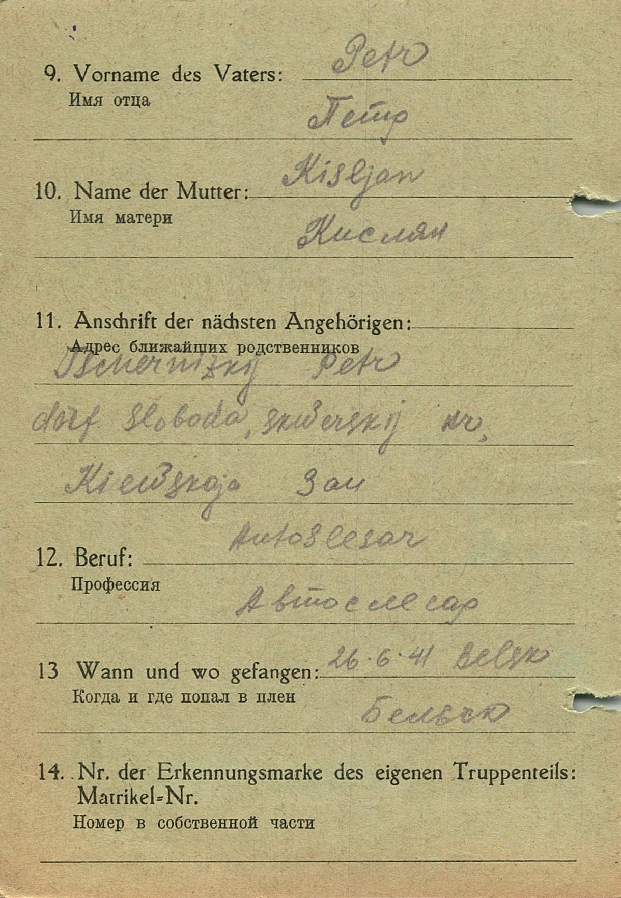 Военнопленные, трофейные карточки. Киевская обл.