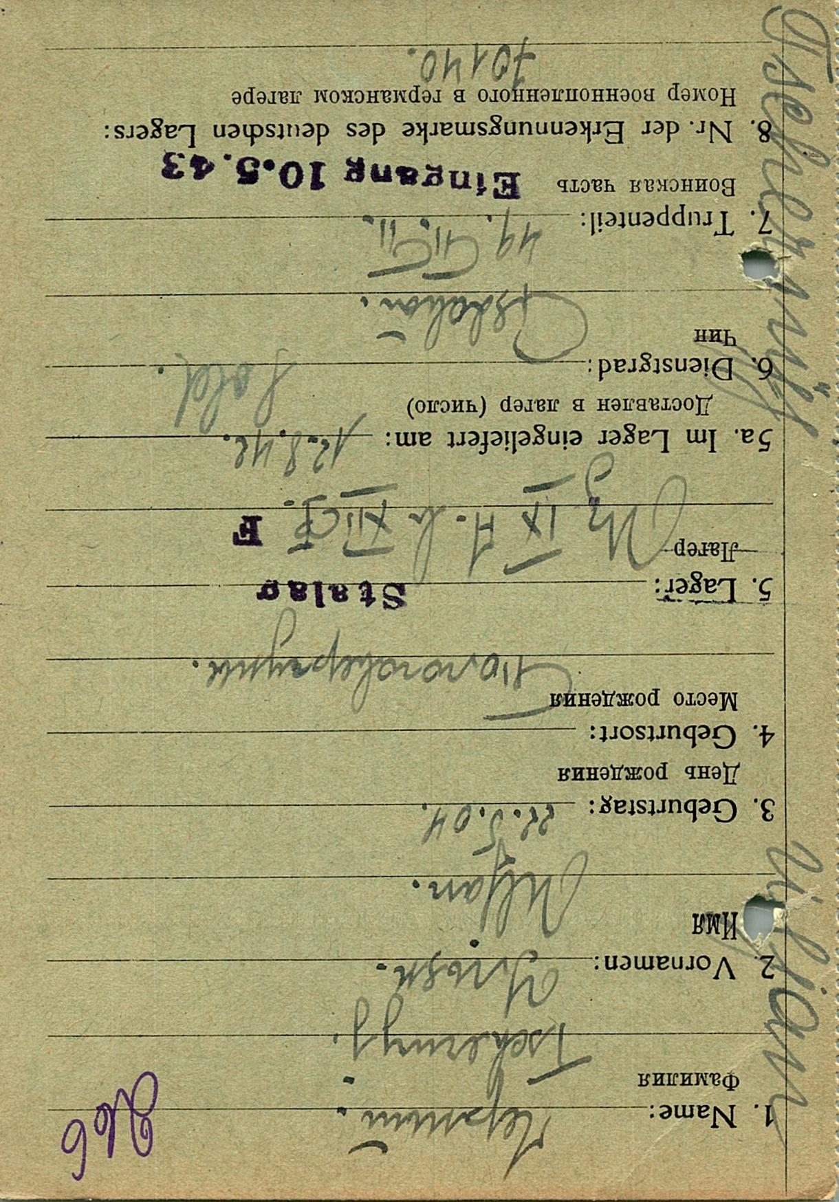 Военнопленные, трофейные карточки. Киевская обл.