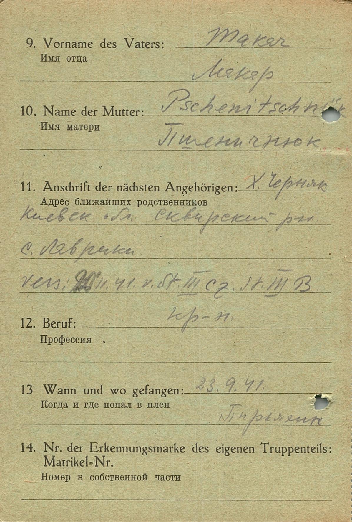 Военнопленные, трофейные карточки. Киевская обл.
