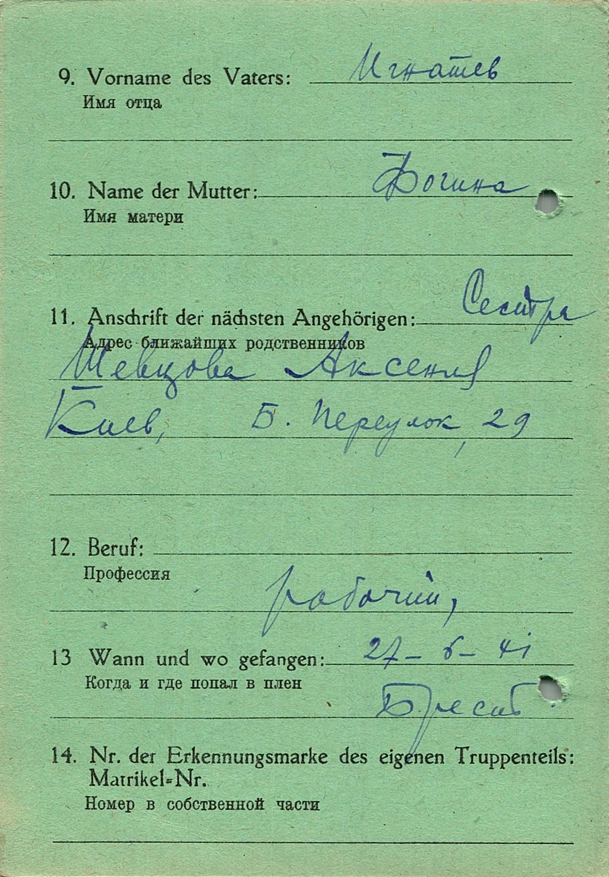 Военнопленные, трофейные карточки. Киевская обл.