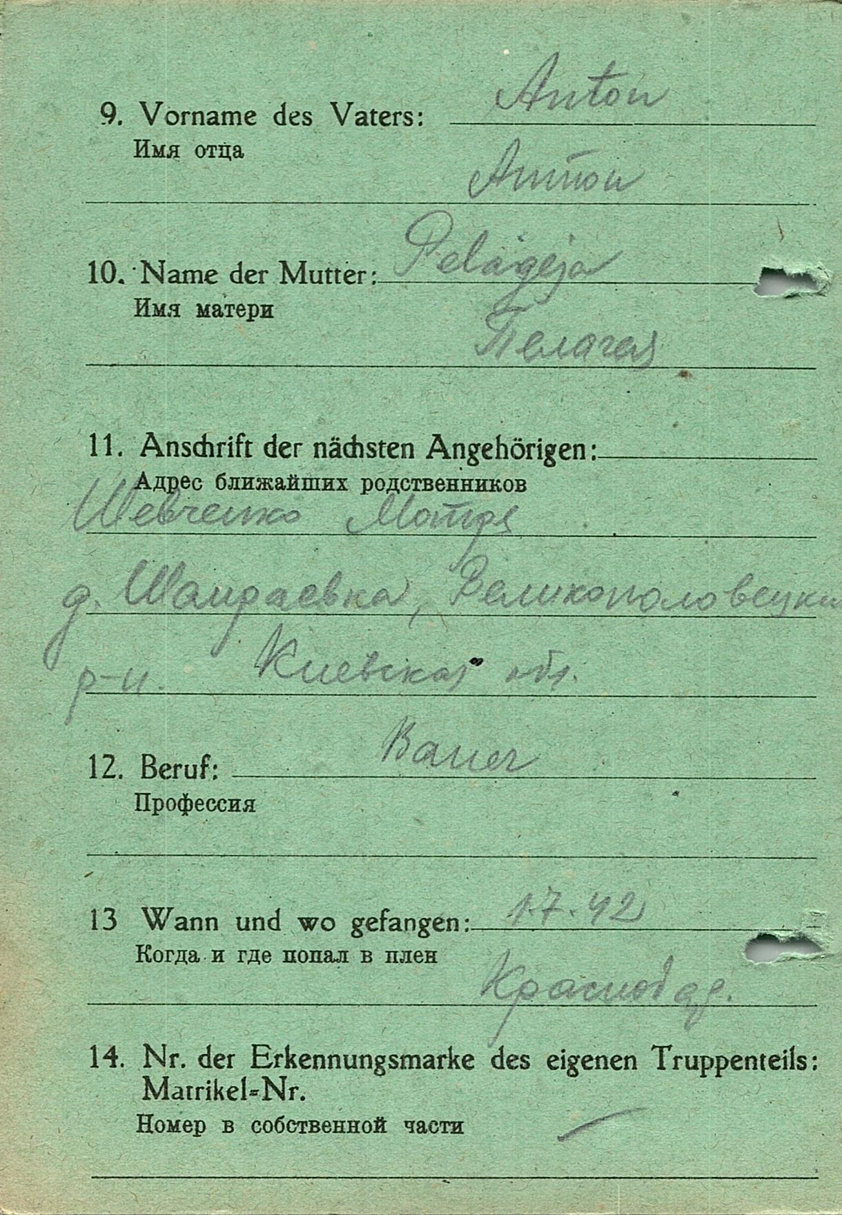 Военнопленные, трофейные карточки. Киевская обл.