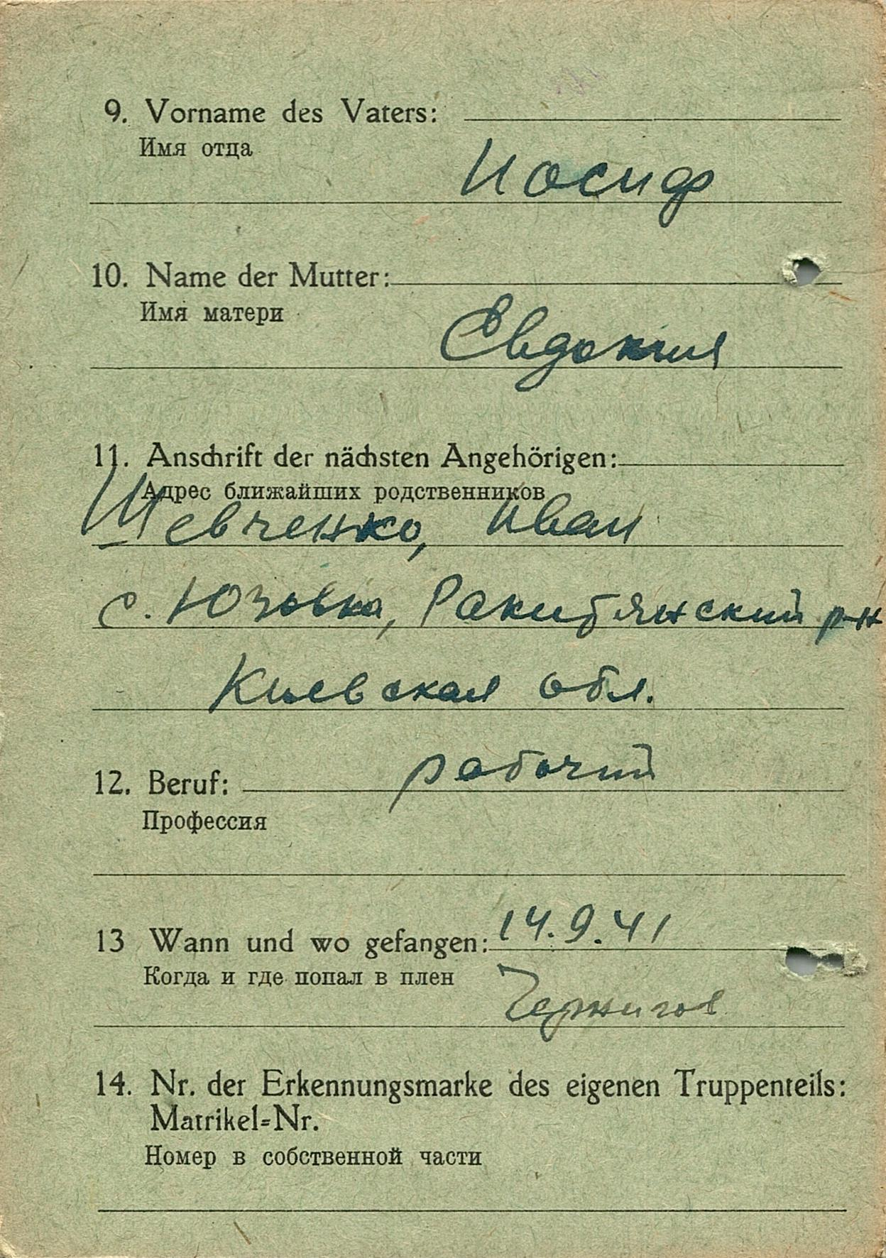 Военнопленные, трофейные карточки. Киевская обл.