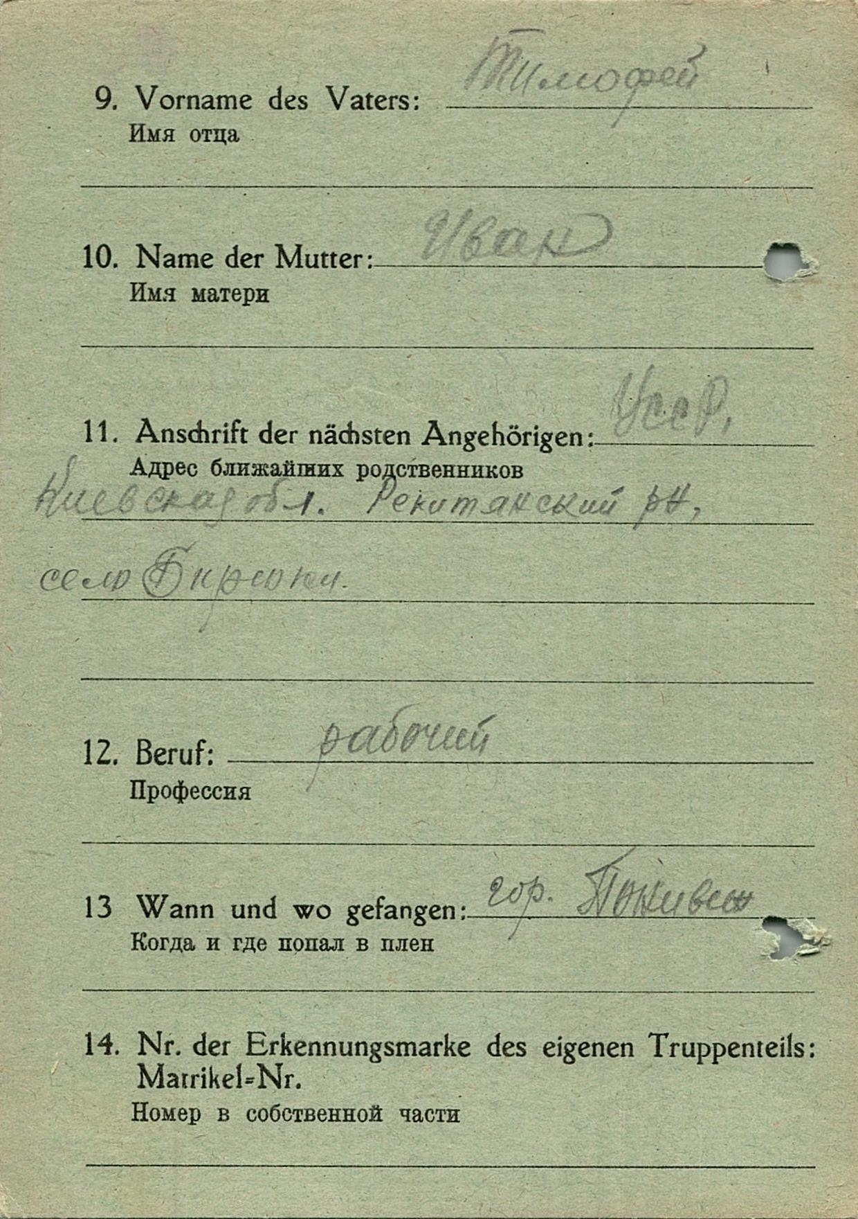 Военнопленные, трофейные карточки. Киевская обл.