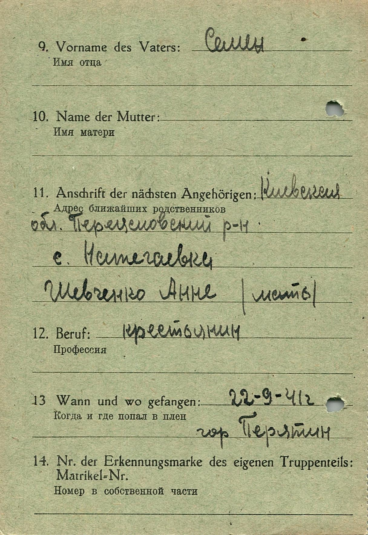 Военнопленные, трофейные карточки. Киевская обл.