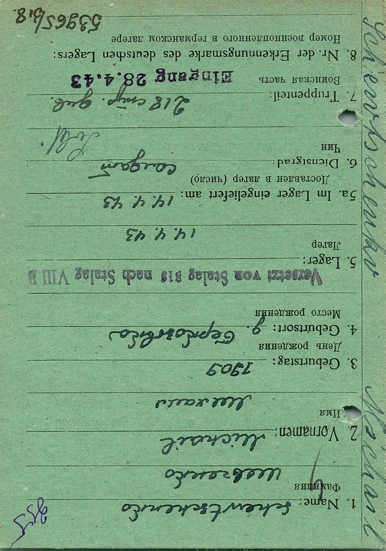 Военнопленные, трофейные карточки. Киевская обл.