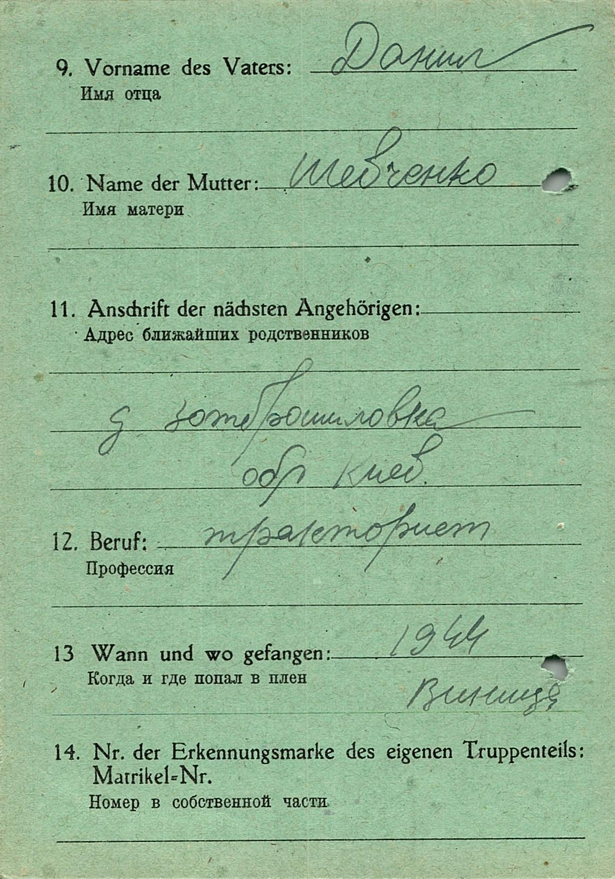 Военнопленные, трофейные карточки. Киевская обл.
