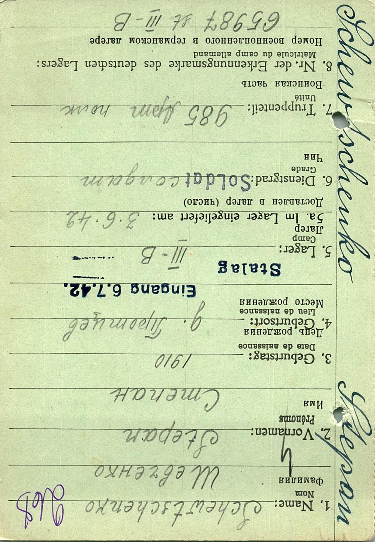Военнопленные, трофейные карточки. Киевская обл.