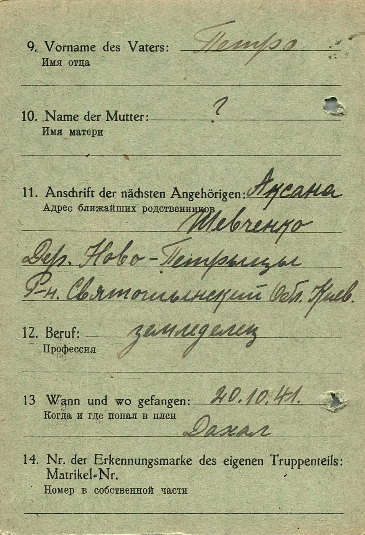 Военнопленные, трофейные карточки. Киевская обл.