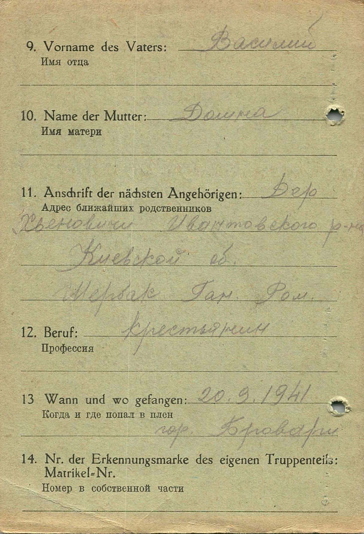 Военнопленные, трофейные карточки. Киевская обл.