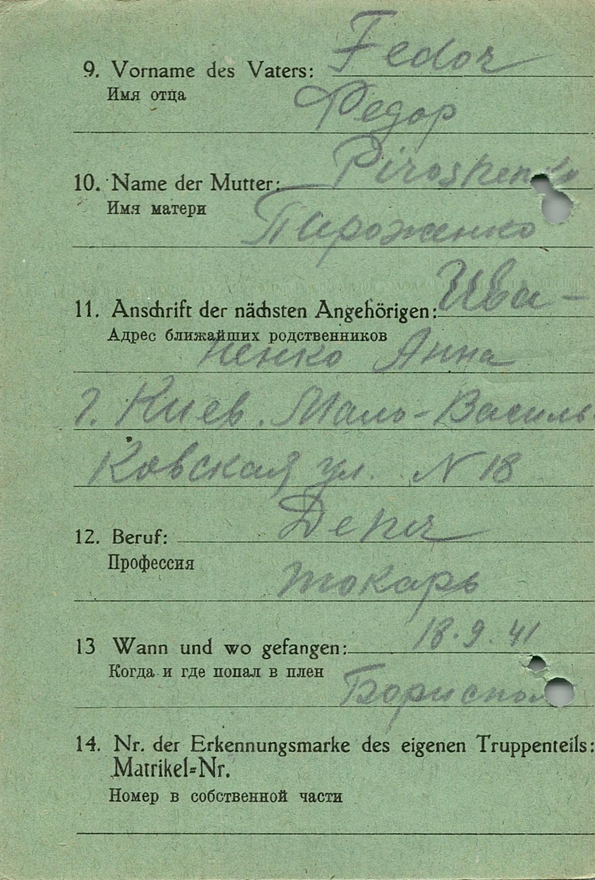 Военнопленные, трофейные карточки. Киевская обл.