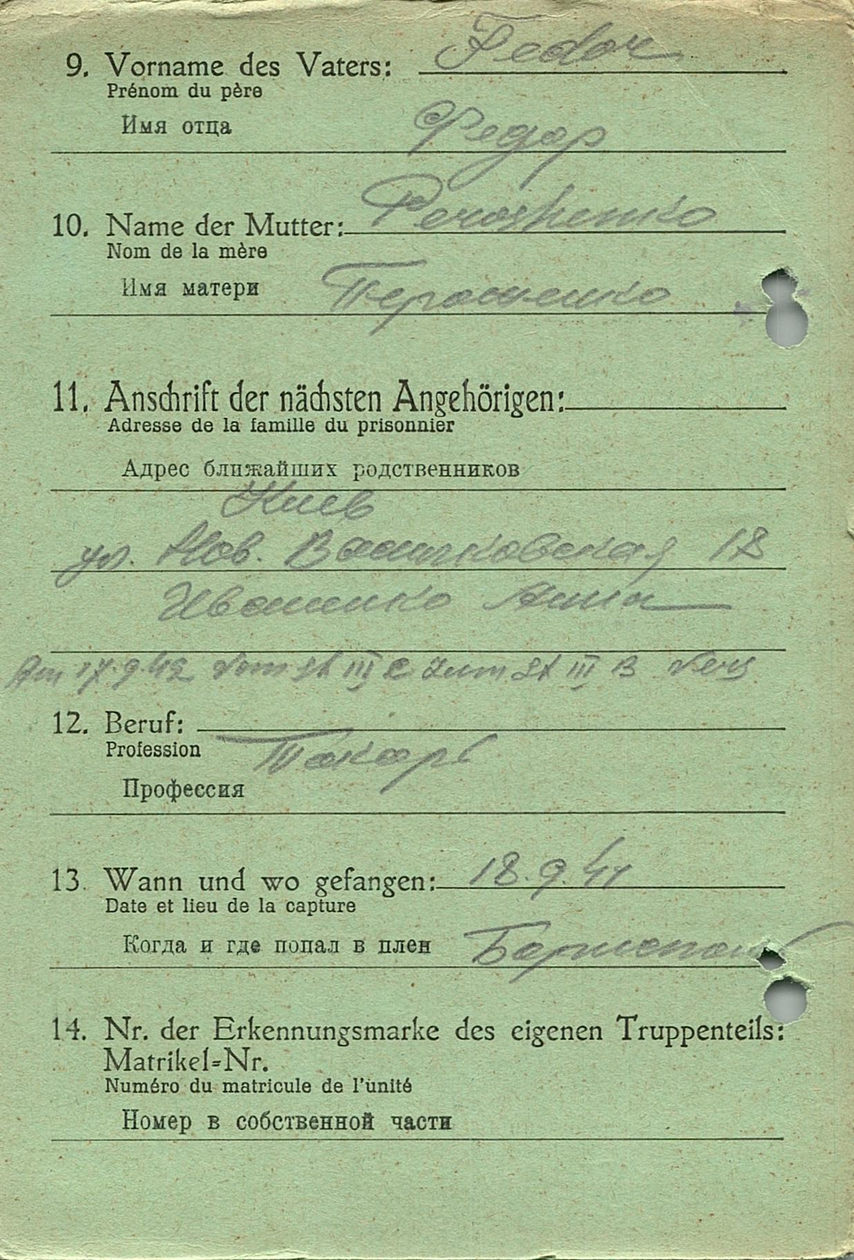 Военнопленные, трофейные карточки. Киевская обл.