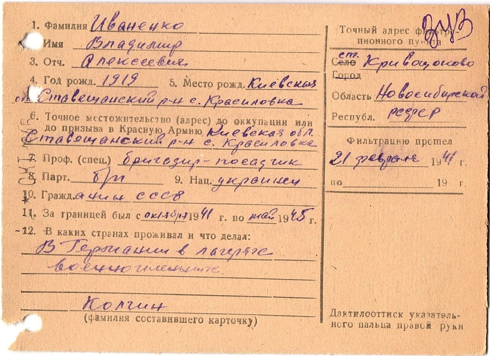 Военнопленные, трофейные карточки. Киевская обл.