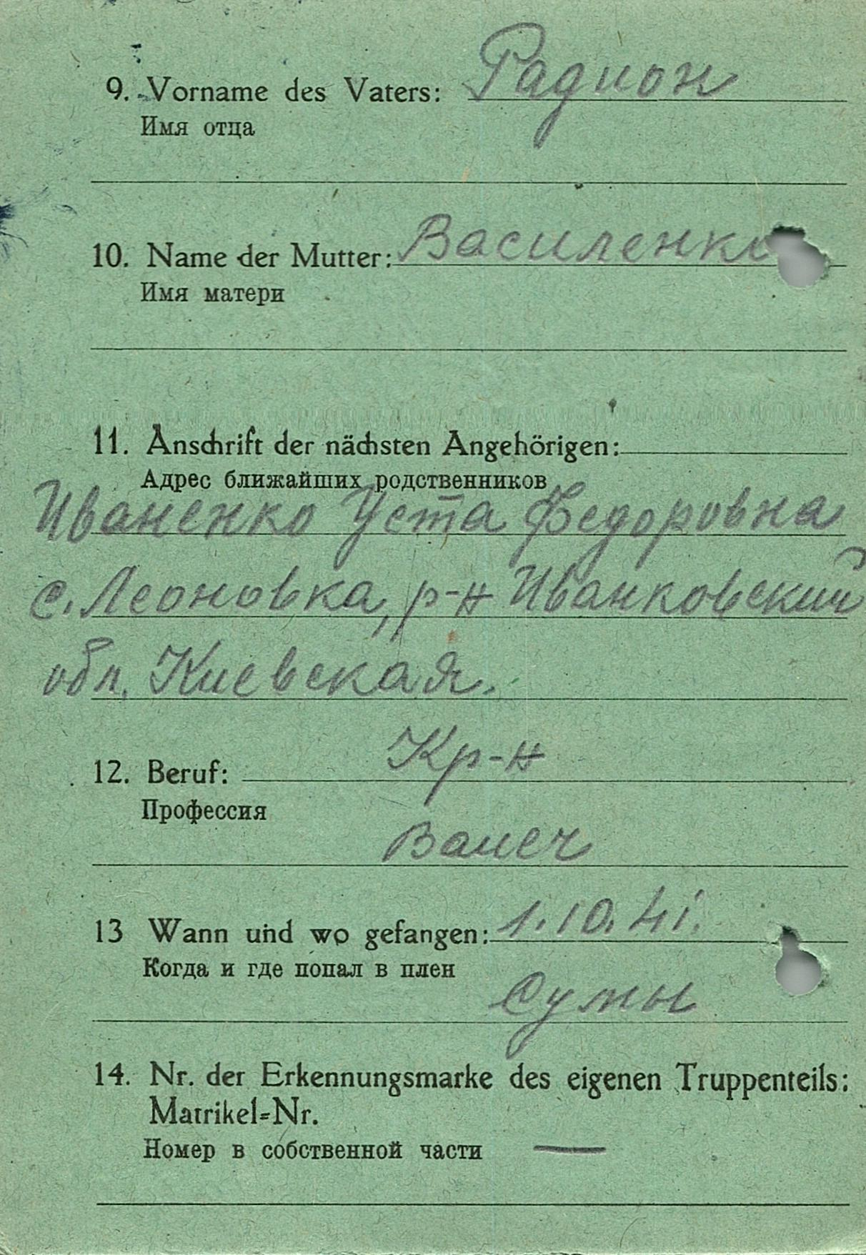 Военнопленные, трофейные карточки. Киевская обл.