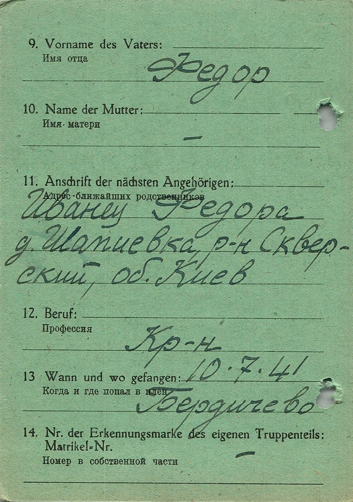 Военнопленные, трофейные карточки. Киевская обл.