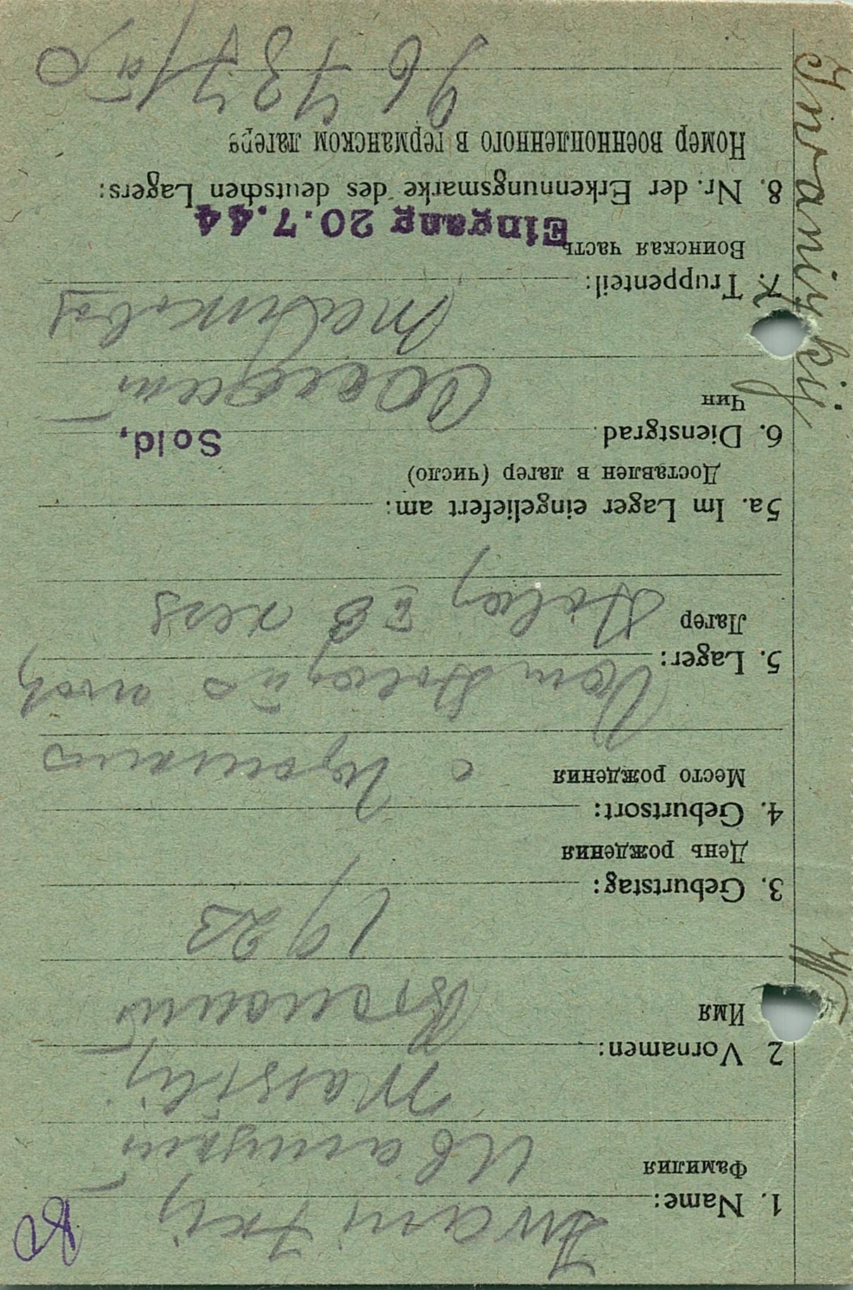 Военнопленные, трофейные карточки. Киевская обл.