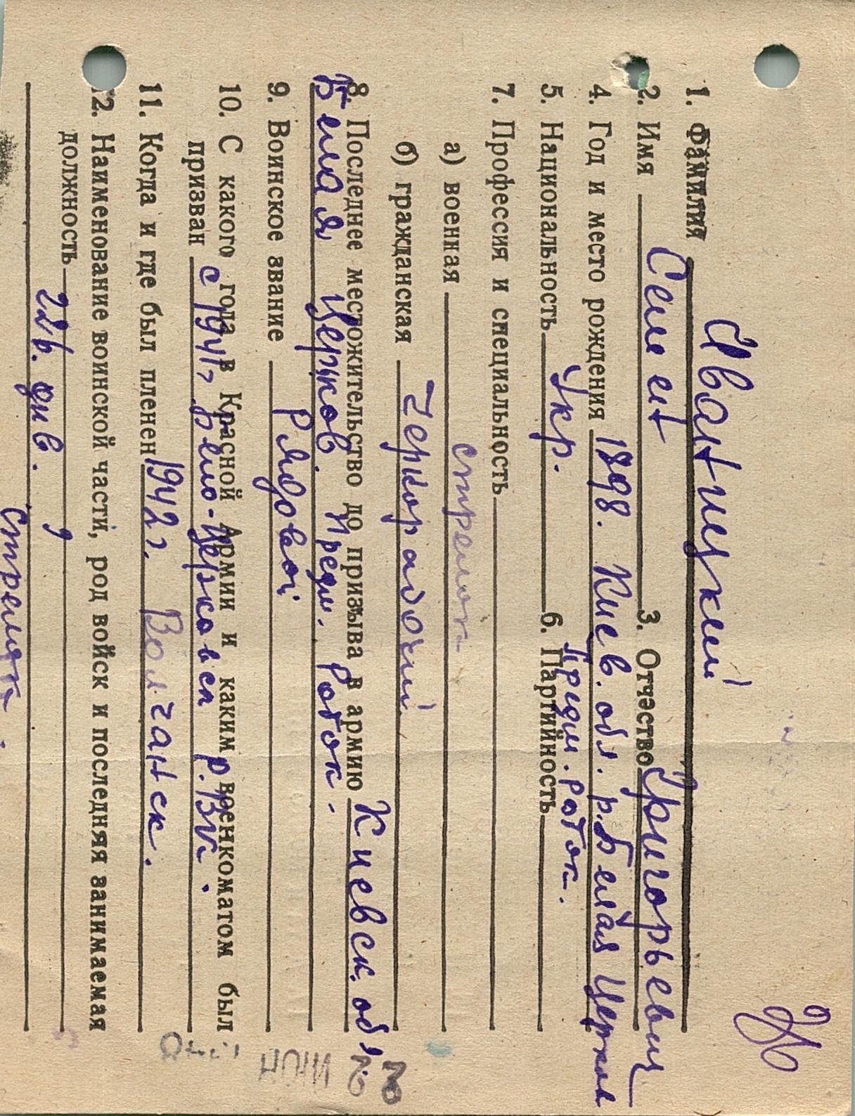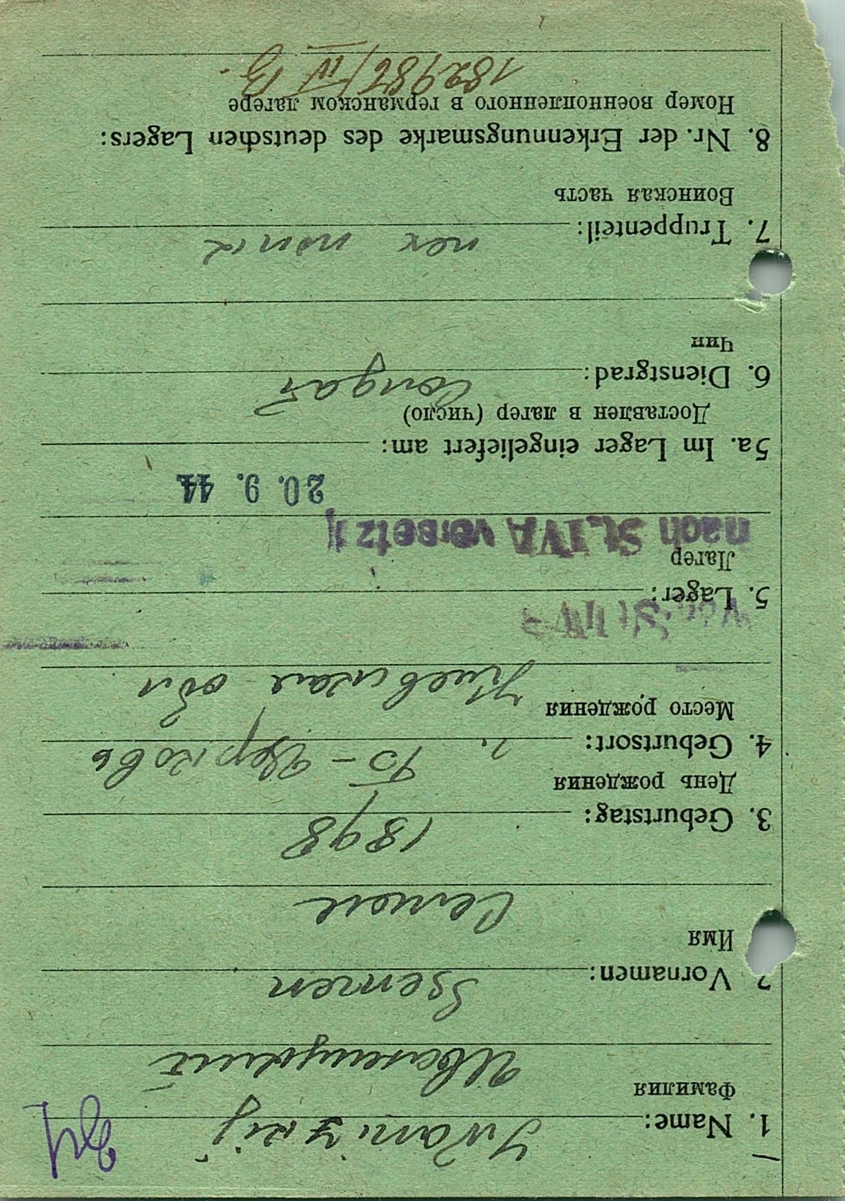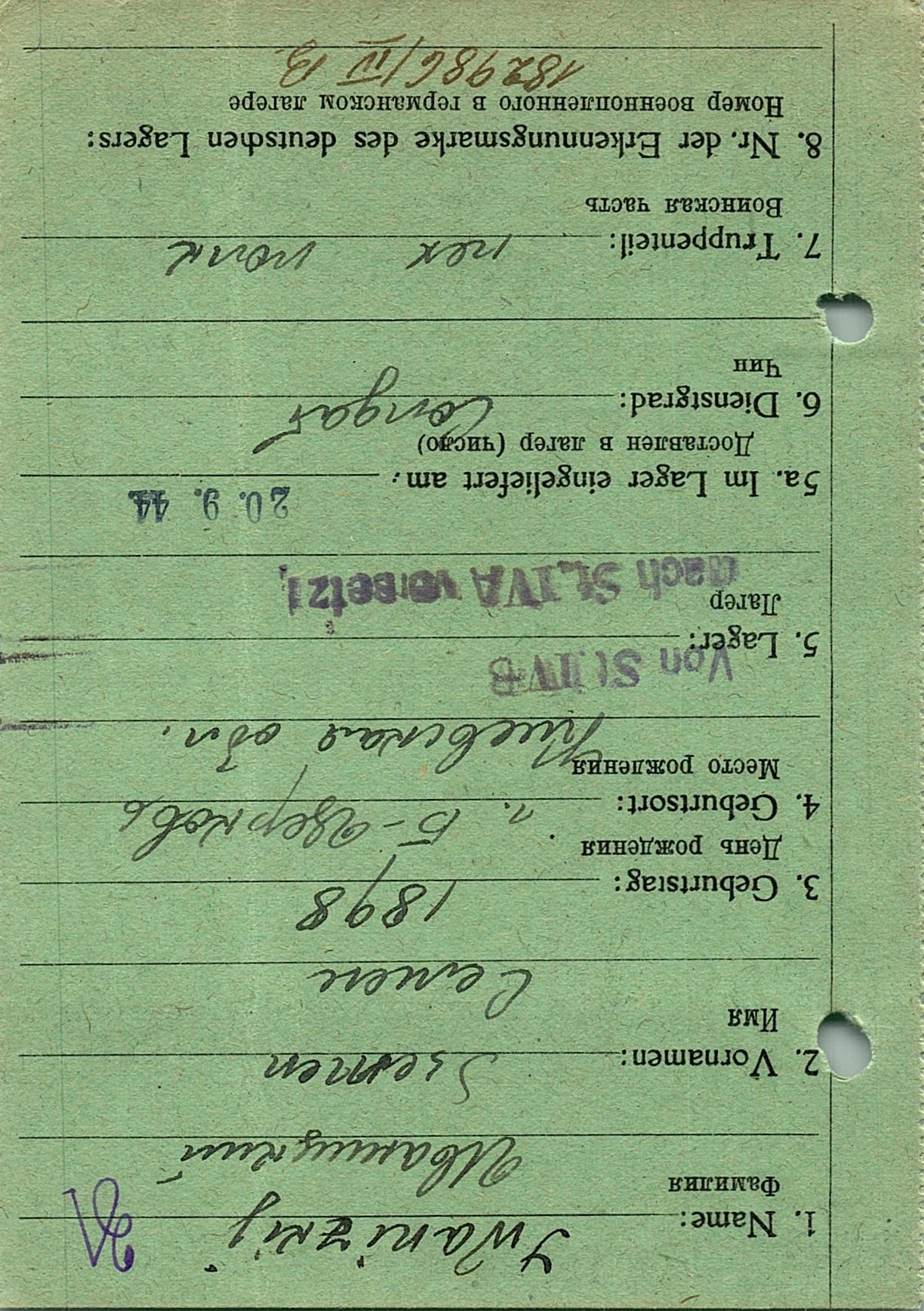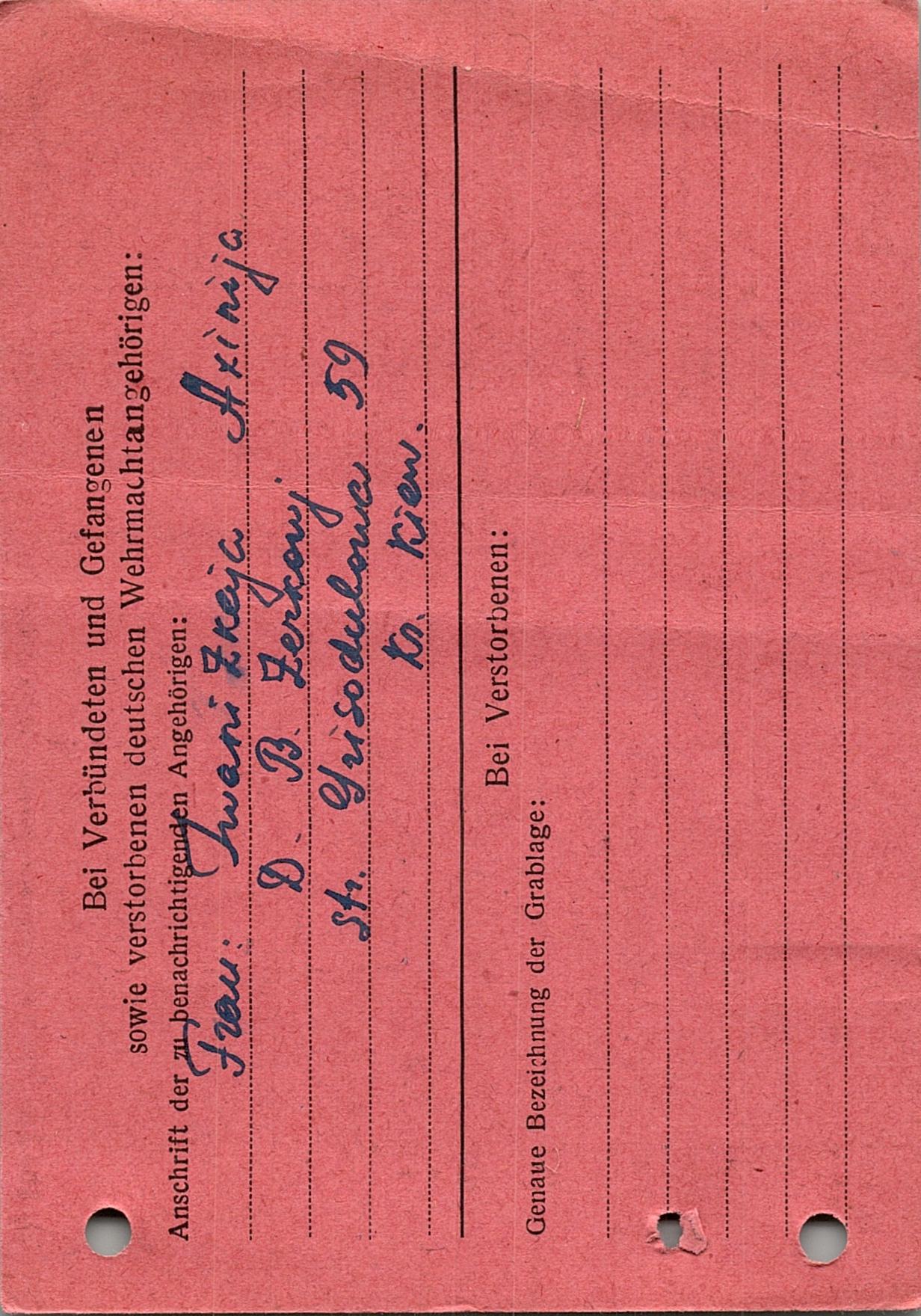 Военнопленные, трофейные карточки. Киевская обл.