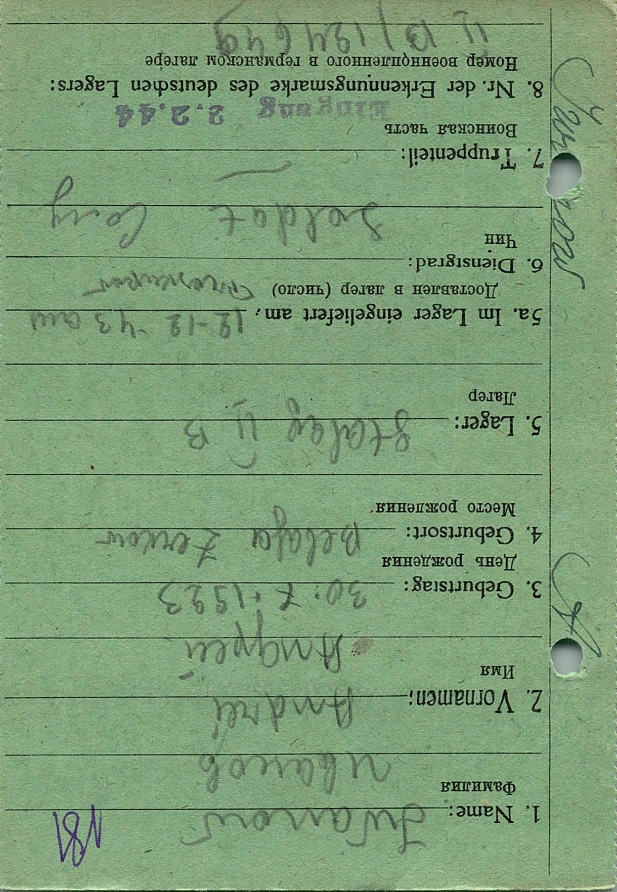 Военнопленные, трофейные карточки. Киевская обл.