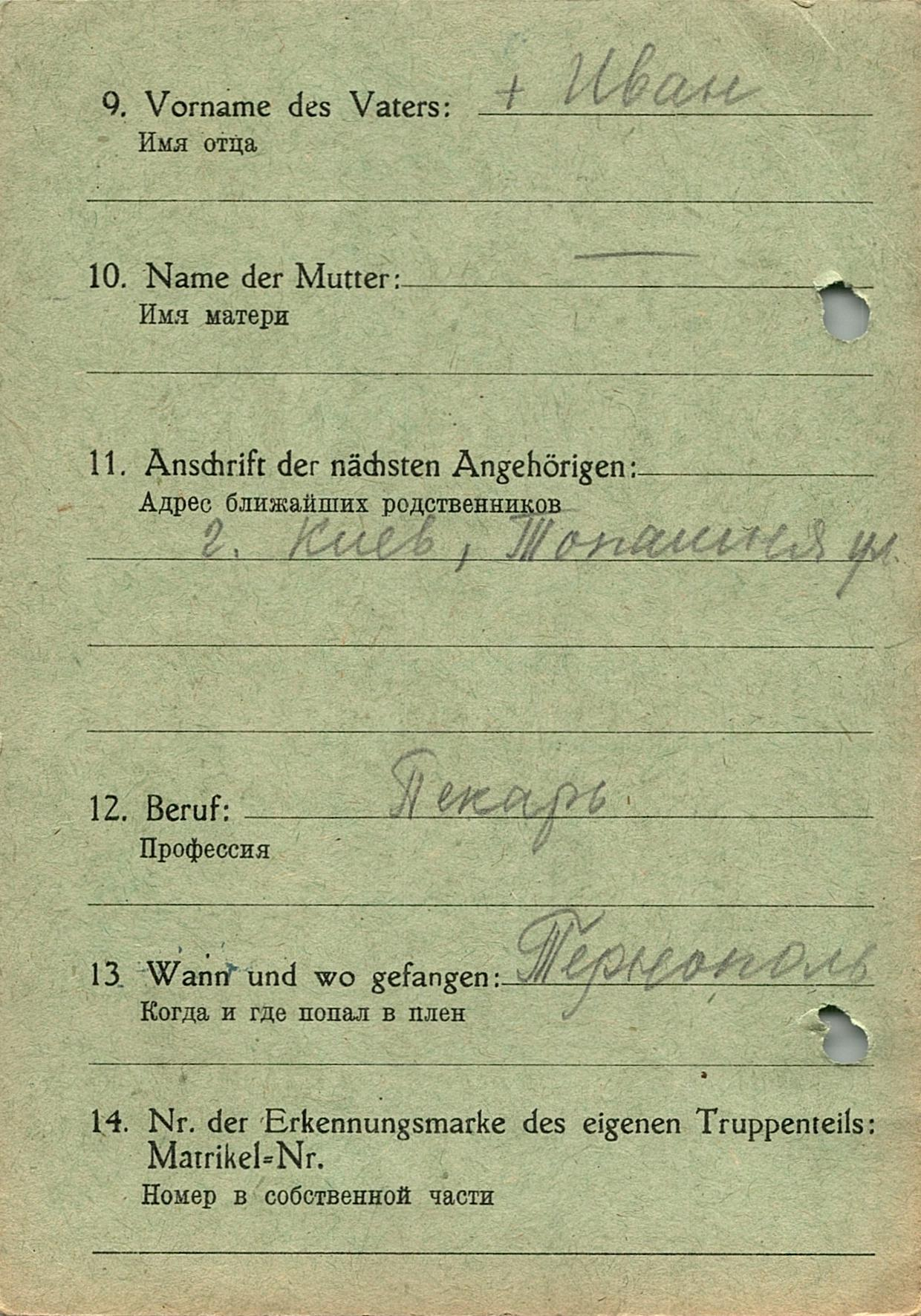 Военнопленные, трофейные карточки. Киевская обл.