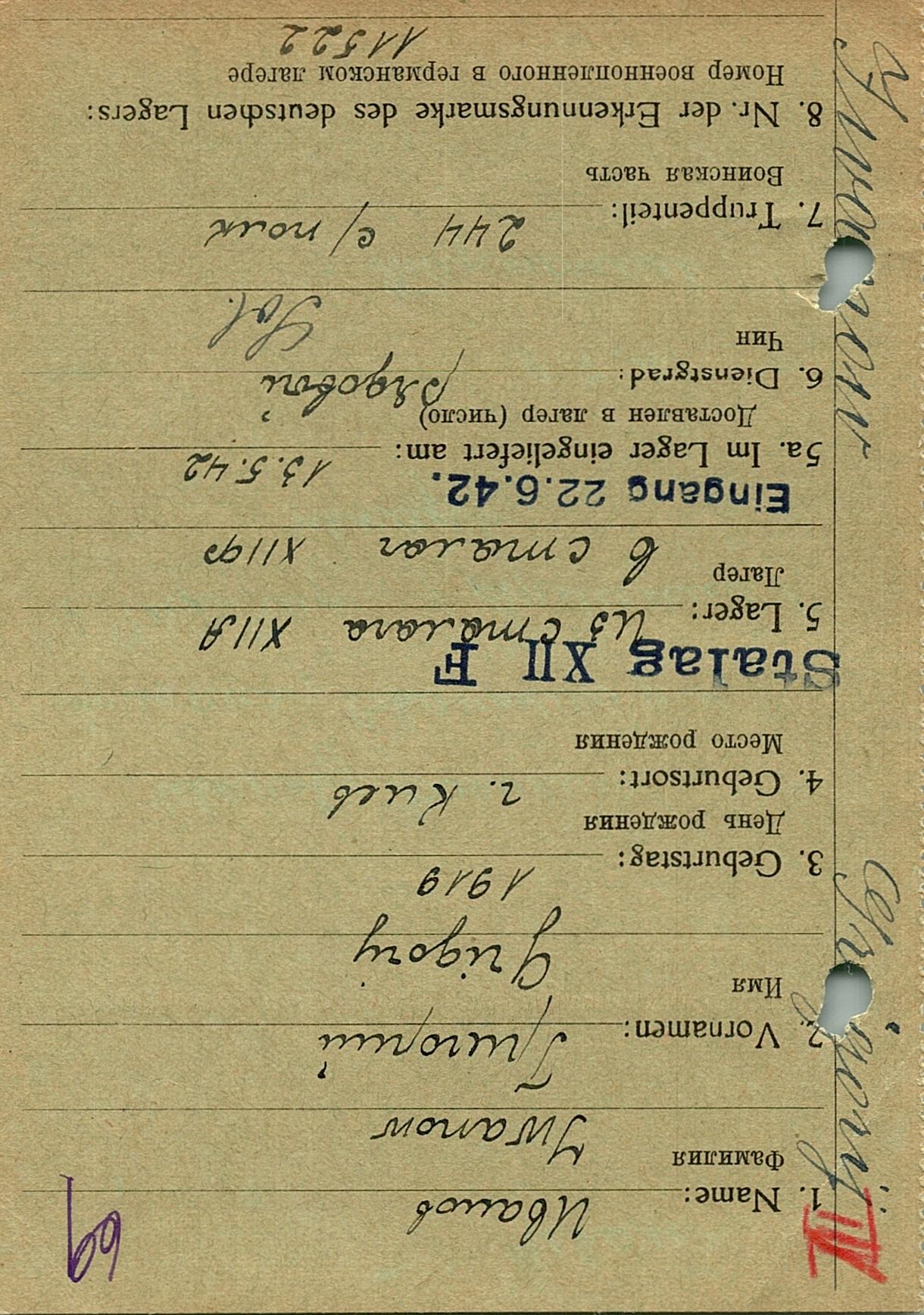Военнопленные, трофейные карточки. Киевская обл.