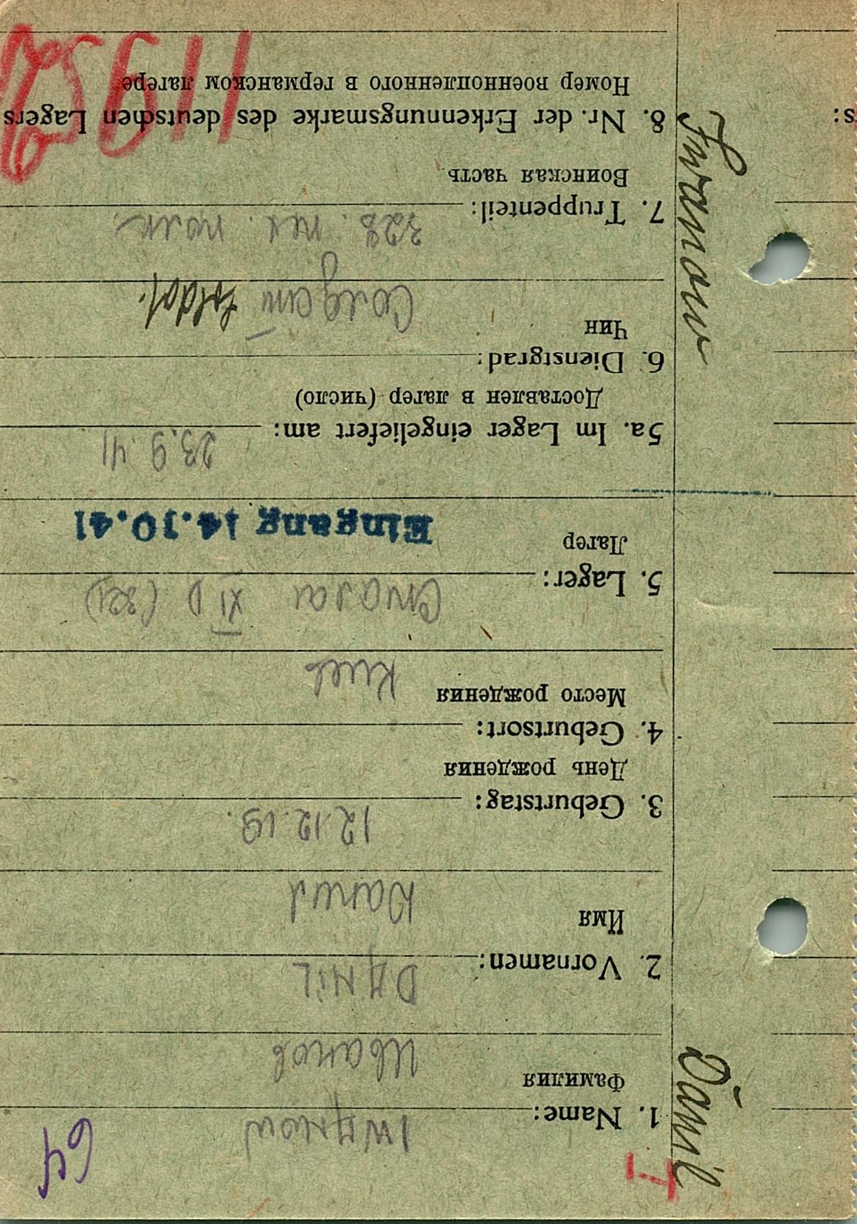 Военнопленные, трофейные карточки. Киевская обл.